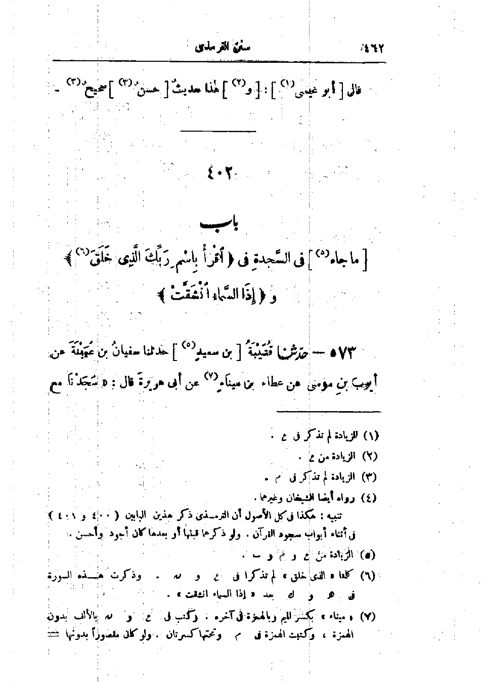 573 - حَدَّثَنَا قُتَيْبَةُ بْنُ سَعِيدٍ قَالَ: حَدَّثَنَا سُفْيَانُ بْنُ عُيَيْنَةَ، عَنْ أَيُّوبَ بْنِ مُوسَى، عَنْ عَطَاءِ بْنِ مِينَاءٍ، عَنْ أَبِي هُرَيْرَةَ، قَالَ: «§سَجَدْنَا مَعَ -[463]- رَسُولِ اللَّهِ صَلَّى اللَّهُ عَلَيْهِ وَسَلَّمَ فِي اقْرَأْ بِاسْمِ رَبِّكَ، وَإِذَا السَّمَاءُ انْشَقَّتْ»
