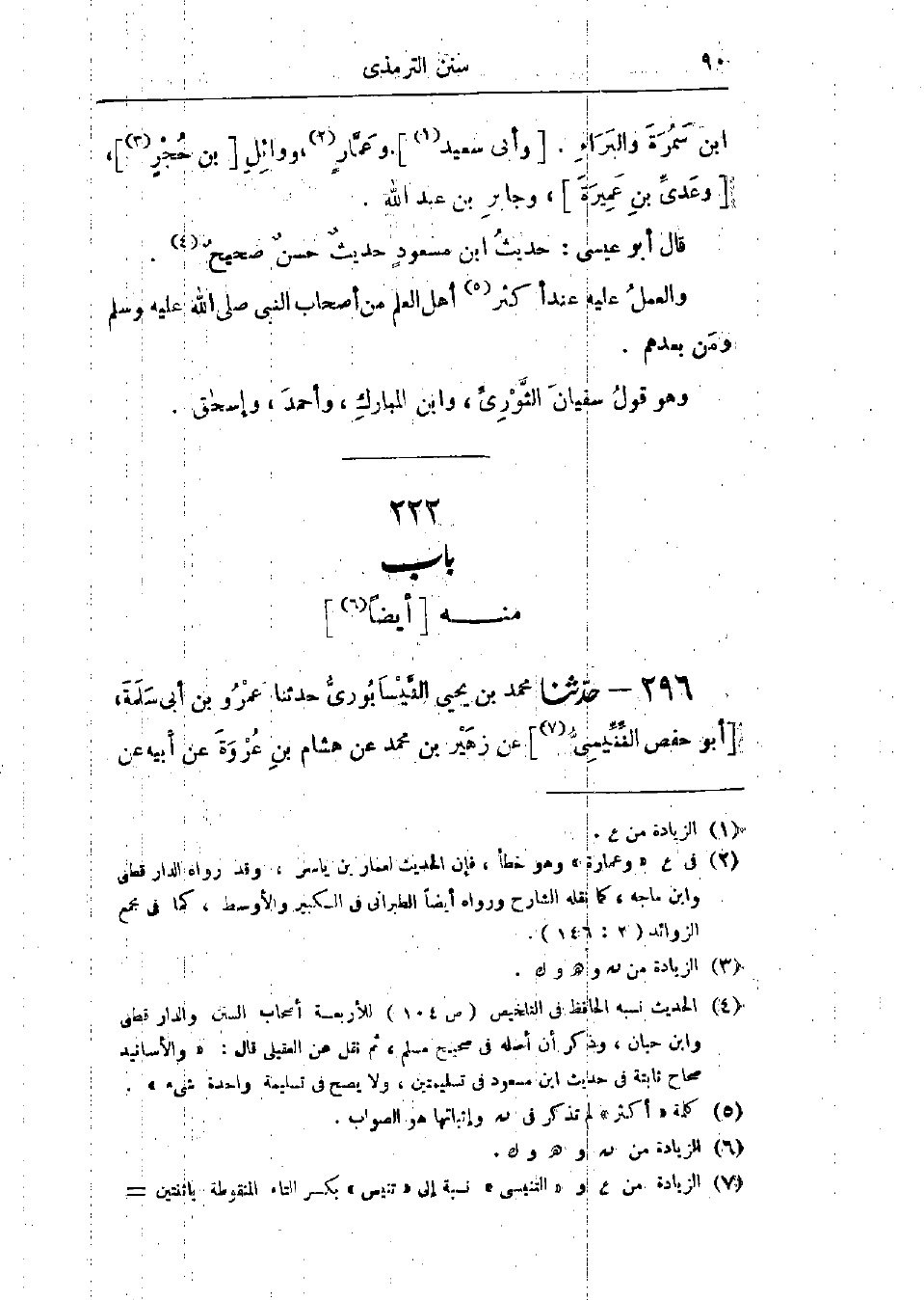 296 - حَدَّثَنَا مُحَمَّدُ بْنُ يَحْيَى النَّيْسَابُورِيُّ قَالَ: حَدَّثَنَا عَمْرُو بْنُ أَبِي سَلَمَةَ، عَنْ زُهَيْرِ بْنِ مُحَمَّدٍ، عَنْ هِشَامِ بْنِ عُرْوَةَ، عَنْ أَبِيهِ، عَنْ -[91]- عَائِشَةَ، «أَنَّ رَسُولَ اللَّهِ صَلَّى اللَّهُ عَلَيْهِ وَسَلَّمَ كَانَ §يُسَلِّمُ فِي الصَّلَاةِ تَسْلِيمَةً وَاحِدَةً تِلْقَاءَ وَجْهِهِ، ثُمَّ يَمِيلُ إِلَى الشِّقِّ الأَيْمَنِ شَيْئًا»، وَفِي البَابِ عَنْ سَهْلِ بْنِ سَعْدٍ، «وَحَدِيثُ عَائِشَةَ لَا نَعْرِفُهُ مَرْفُوعًا، إِلَّا مِنْ هَذَا الوَجْهِ» قَالَ مُحَمَّدُ بْنُ إِسْمَاعِيلَ: " زُهَيْرُ بْنُ مُحَمَّدٍ أَهْلُ الشَّامِ يَرْوُونَ عَنْهُ مَنَاكِيرَ، وَرِوَايَةُ أَهْلِ العِرَاقِ أَشْبَهُ. قَالَ مُحَمَّدٌ: وَقَالَ أَحْمَدُ بْنُ حَنْبَلٍ: «كَأَنَّ زُهَيْرَ بْنَ مُحَمَّدٍ الَّذِي كَانَ وَقَعَ عِنْدَهُمْ لَيْسَ هُوَ هَذَا الَّذِي يُرْوَى عَنْهُ بِالعِرَاقِ، كَأَنَّهُ رَجُلٌ آخَرُ، قَلَبُوا اسْمَهُ»، -[92]- «وَقَدْ قَالَ بِهِ بَعْضُ أَهْلِ العِلْمِ فِي التَّسْلِيمِ فِي الصَّلَاةِ، -[93]- وَأَصَحُّ الرِّوَايَاتِ عَنِ النَّبِيِّ صَلَّى اللَّهُ عَلَيْهِ وَسَلَّمَ تَسْلِيمَتَانِ، وَعَلَيْهِ أَكْثَرُ أَهْلِ العِلْمِ مِنْ أَصْحَابِ النَّبِيِّ صَلَّى اللَّهُ عَلَيْهِ وَسَلَّمَ، وَالتَّابِعِينَ، وَمَنْ بَعْدَهُمْ»، " وَرَأَى قَوْمٌ مِنْ أَصْحَابِ النَّبِيِّ صَلَّى اللَّهُ عَلَيْهِ وَسَلَّمَ، وَغَيْرِهِمْ: تَسْلِيمَةً وَاحِدَةً فِي المَكْتُوبَةِ "، قَالَ الشَّافِعِيُّ: «إِنْ شَاءَ سَلَّمَ تَسْلِيمَةً وَاحِدَةً، وَإِنْ شَاءَ سَلَّمَ تَسْلِيمَتَيْنِ»