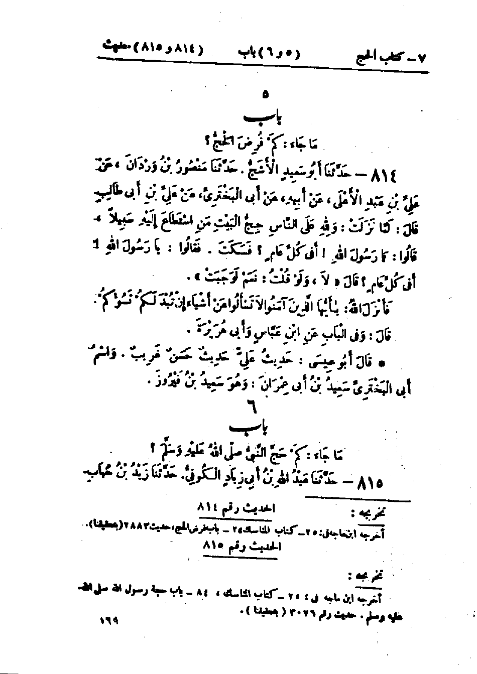 814 - حَدَّثَنَا أَبُو سَعِيدٍ الأَشَجُّ قَالَ: حَدَّثَنَا مَنْصُورُ بْنُ وَرْدَانَ، عَنْ عَلِيِّ بْنِ عَبْدِ الأَعْلَى، عَنْ أَبِيهِ، عَنْ أَبِي البَخْتَرِيِّ، عَنْ عَلِيِّ بْنِ أَبِي طَالِبٍ قَالَ: لَمَّا نَزَلَتْ: {وَلِلَّهِ عَلَى النَّاسِ حِجُّ البَيْتِ مَنْ اسْتَطَاعَ إِلَيْهِ سَبِيلًا} [آل عمران: 97]، قَالُوا: يَا رَسُولَ اللَّهِ، أَفِي كُلِّ عَامٍ؟ «فَسَكَتَ»، فَقَالُوا: يَا رَسُولَ اللَّهِ، أَفِي كُلِّ عَامٍ؟ قَالَ: " §لَا، وَلَوْ قُلْتُ: نَعَمْ , لَوَجَبَتْ "، فَأَنْزَلَ اللَّهُ: {يَا أَيُّهَا الَّذِينَ آمَنُوا لَا تَسْأَلُوا عَنْ أَشْيَاءَ إِنْ تُبْدَ لَكُمْ تَسُؤْكُمْ} [المائدة: 101] وَفِي البَابِ عَنْ ابْنِ عَبَّاسٍ، وَأَبِي هُرَيْرَةَ. حَدِيثُ عَلِيٍّ حَدِيثٌ غَرِيبٌ مِنْ هَذَا الوَجْهِ، سَمِعْتُ مُحَمَّدًا يَقُولُ: أَبُو الْبَخْتَرِيِّ لَمْ يُدْرِكْ عَلِيًّا. وَاسْمُ أَبِي البَخْتَرِيِّ سَعِيدُ بْنُ أَبِي عِمْرَانَ وَهُوَ سَعِيدُ بْنُ فَيْرُوزَ