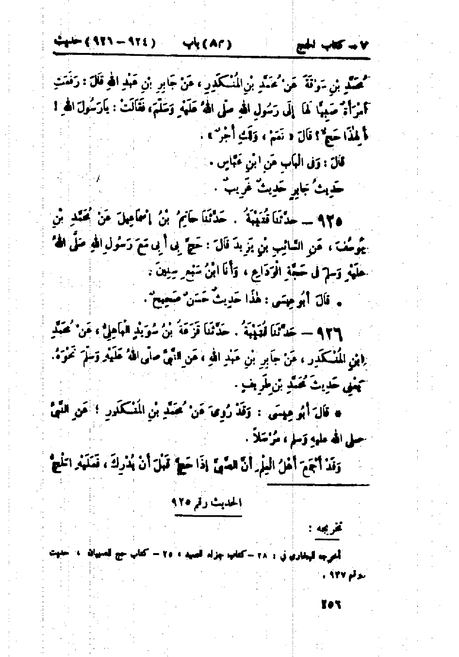 926 - حَدَّثَنَا قُتَيْبَةُ قَالَ: حَدَّثَنَا قَزَعَةُ بْنُ سُوَيْدٍ البَاهِلِيُّ، عَنْ مُحَمَّدِ بْنِ المُنْكَدِرِ، عَنْ جَابِرِ بْنِ عَبْدِ اللَّهِ، عَنِ النَّبِيِّ صَلَّى اللَّهُ عَلَيْهِ وَسَلَّمَ نَحْوَهُ، بعني حديث محمد بن طريف