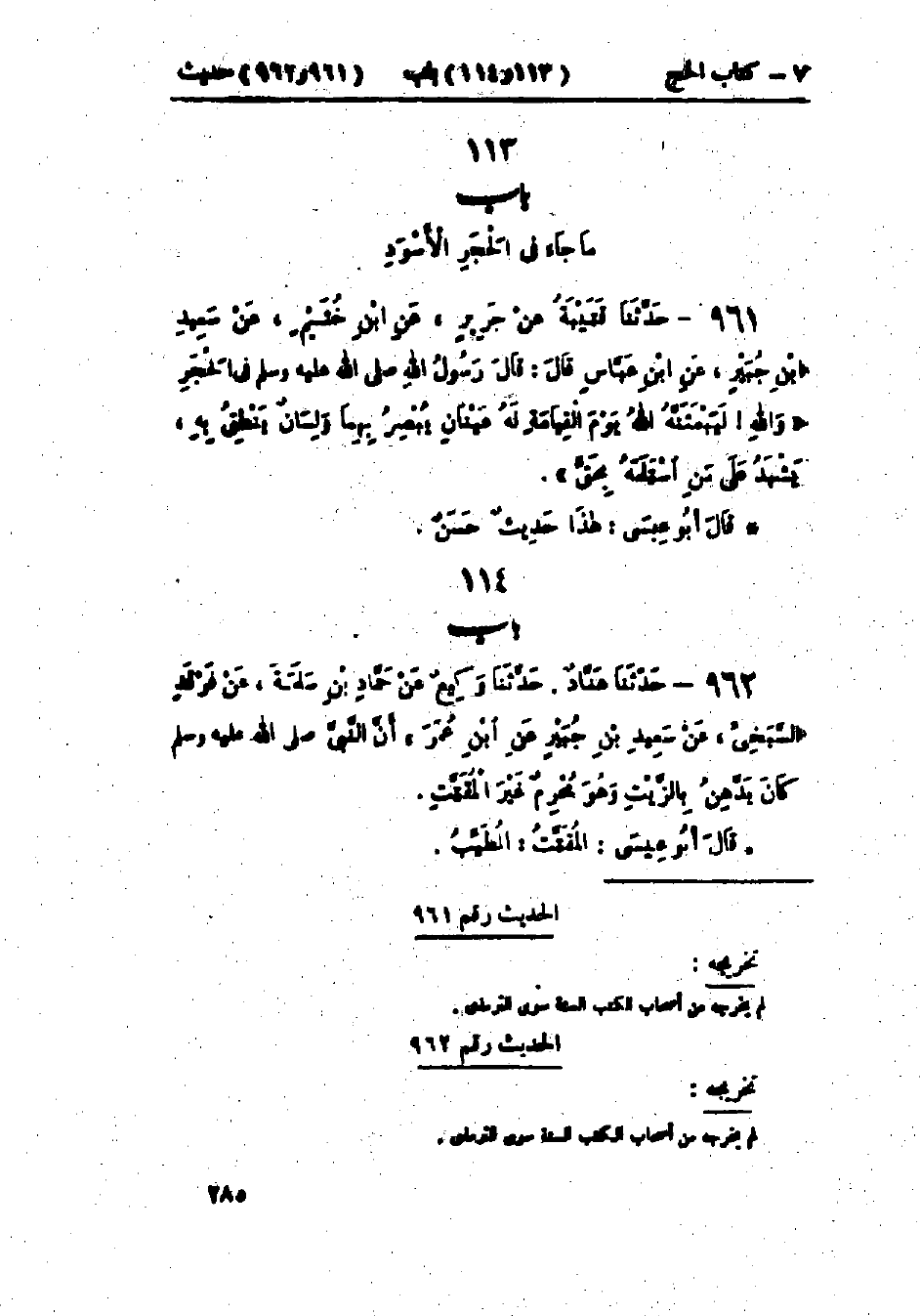 961 - حَدَّثَنَا قُتَيْبَةُ قَالَ: حَدَّثَنَا جَرِيرٌ، عَنْ ابْنِ خُثَيْمٍ، عَنْ سَعِيدِ بْنِ جُبَيْرٍ، عَنْ ابْنِ عَبَّاسٍ قَالَ: قَالَ رَسُولُ اللَّهِ صَلَّى اللَّهُ عَلَيْهِ وَسَلَّمَ فِي الحَجَرِ: «§وَاللَّهِ لَيَبْعَثَنَّهُ اللَّهُ يَوْمَ القِيَامَةِ لَهُ عَيْنَانِ يُبْصِرُ بِهِمَا، وَلِسَانٌ يَنْطِقُ بِهِ، يَشْهَدُ عَلَى مَنْ اسْتَلَمَهُ بِحَقٍّ»: هَذَا حَدِيثٌ حَسَنٌ