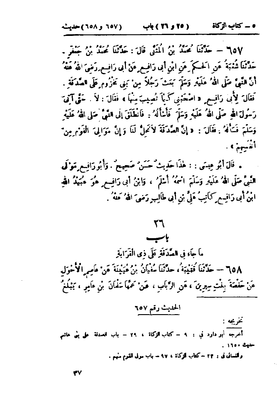 657 - حَدَّثَنَا مُحَمّدُ بْنُ المُثَنَّى، قَالَ: حَدَّثَنَا مُحَمَّدُ بْنُ جَعْفَرٍ قَالَ: حَدَّثَنَا شُعْبَةُ، عَنْ الحَكَمِ، عَنْ ابْنِ أَبِي رَافِعٍ، عَنْ أَبِي رَافِعٍ، أَنَّ النَّبِيَّ صَلَّى اللَّهُ عَلَيْهِ وَسَلَّمَ بَعَثَ رَجُلًا مِنْ بَنِي مَخْزُومٍ عَلَى الصَّدَقَةِ، فَقَالَ لِأَبِي رَافِعٍ: اصْحَبْنِي كَيْمَا تُصِيبَ مِنْهَا، فَقَالَ: لَا، حَتَّى آتِيَ رَسُولَ اللَّهِ صَلَّى اللَّهُ عَلَيْهِ وَسَلَّمَ فَأَسْأَلَهُ، فَانْطَلَقَ إِلَى النَّبِيِّ صَلَّى اللَّهُ عَلَيْهِ وَسَلَّمَ، فَسَأَلَهُ فَقَالَ: «إِنَّ §الصَّدَقَةَ لَا تَحِلُّ لَنَا، وَإِنَّ مَوَالِيَ القَوْمِ مِنْ أَنْفُسِهِمْ»: " هَذَا حَدِيثٌ حَسَنٌ صَحِيحٌ، وَأَبُو رَا1فِعٍ مَوْلَى النَّبِيِّ صَلَّى اللَّهُ عَلَيْهِ وَسَلَّمَ: اسْمُهُ أَسْلَمُ، وَابْنُ أَبِي رَافِعٍ هُوَ عُبَيْدُ اللَّهِ بْنُ أَبِي رَافِعٍ كَاتِبُ عَلِيِّ بْنِ أَبِي طَالِبٍ "