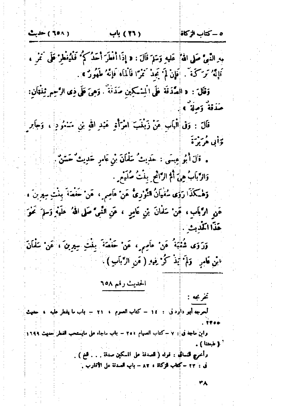 وقَالَ: " §الصَّدَقَةُ عَلَى المِسْكِينِ صَدَقَةٌ، وَهِيَ عَلَى ذِي الرَّحِمِ ثِنْتَانِ: صَدَقَةٌ وَصِلَةٌ " وَفِي البَابِ عَنْ زَيْنَبَ امْرَأَةِ عَبْدِ اللَّهِ بْنِ مَسْعُودٍ، وَجَابِرٍ، وَأَبِي هُرَيْرَةَ.: «حَدِيثُ سَلْمَانَ بْنِ عَامِرٍ حَدِيثٌ حَسَنٌ، وَالرَّبَابُ هِيَ أُمُّ الرَّائِحِ بِنْتُ صُلَيْعٍ»، وَهَكَذَا رَوَى سُفْيَانُ الثَّوْرِيُّ، عَنْ عَاصِمٍ، عَنْ حَفْصَةَ بِنْتِ سِيرِينَ، عَنْ الرَّبَابِ، عَنْ سَلْمَانَ بْنِ عَامِرٍ، عَنِ النَّبِيِّ صَلَّى اللَّهُ عَلَيْهِ وَسَلَّمَ نَحْوَ هَذَا الحَدِيثِ، وَرَوَى شُعْبَةُ، عَنْ عَاصِمٍ، عَنْ حَفْصَةَ بِنْتِ سِيرِينَ، عَنْ سَلْمَانَ بْنِ عَامِرٍ وَلَمْ يَذْكُرْ فِيهِ عَنِ الرَّبَابِ، وَحَدِيثُ سُفْيَانَ الثَّوْرِيِّ وَابْنِ عُيَيْنَةَ أَصَحُّ وَهَكَذَا رَوَى ابْنُ عَوْنٍ، وَهِشَامُ بْنُ حَسَّانَ، عَنْ حَفْصَةَ بِنْتِ سِيرِينَ، عَنْ الرَّبَابِ، عَنْ سَلْمَانَ بْنِ عَامِرٍ