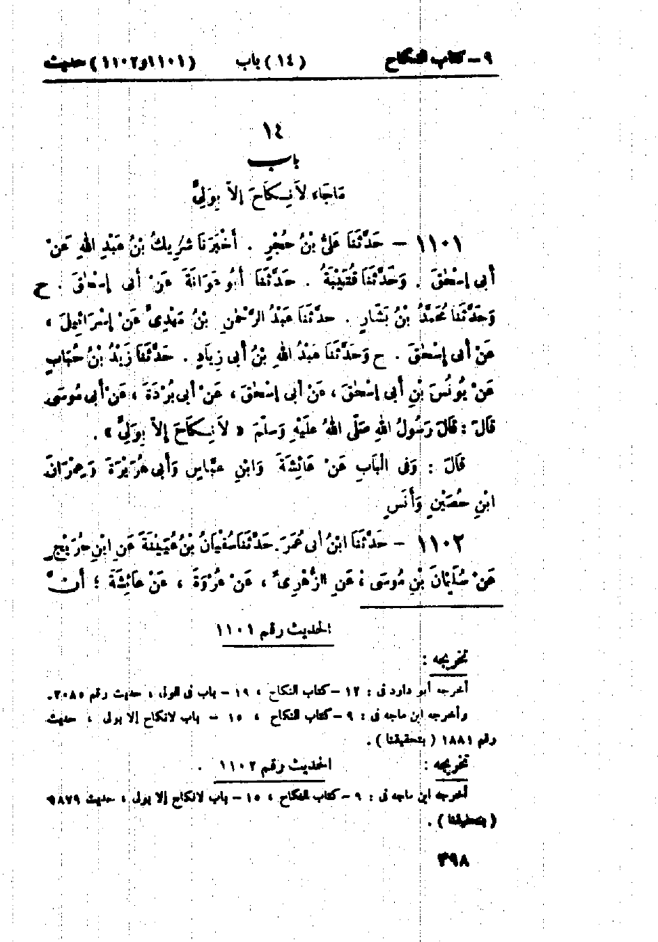 1100 - حَدَّثَنَا قُتَيْبَةُ قَالَ: حَدَّثَنَا حَمَّادُ بْنُ زَيْدٍ، عَنْ عَمْرِو بْنِ دِينَارٍ، عَنْ جَابِرِ بْنِ عَبْدِ اللَّهِ قَالَ: تَزَوَّجْتُ امْرَأَةً، فَأَتَيْتُ النَّبِيَّ صَلَّى اللَّهُ عَلَيْهِ وَسَلَّمَ، فَقَالَ: «أَتَزَوَّجْتَ يَا جَابِرُ؟»، فَقُلْتُ: نَعَمْ، فَقَالَ: «بِكْرًا، أَمْ ثَيِّبًا؟»، فَقُلْتُ: لَا، بَلْ ثَيِّبًا، فَقَالَ: «§هَلَّا جَارِيَةً تُلَاعِبُهَا وَتُلَاعِبُكَ»، فَقُلْتُ: يَا رَسُولَ اللَّهِ، إِنَّ عَبْدَ اللَّهِ مَاتَ، وَتَرَكَ سَبْعَ بَنَاتٍ أَوْ تِسْعًا، فَجِئْتُ بِمَنْ يَقُومُ عَلَيْهِنَّ، قَالَ: فَدَعَا لِي وَفِي البَابِ عَنْ أُبَيِّ بْنِ كَعْبٍ، وَكَعْبِ بْنِ عُجْرَةَ.: «حَدِيثُ جَابِرِ بْنِ عَبْدِ اللَّهِ حَدِيثٌ حَسَنٌ صَحِيحٌ»