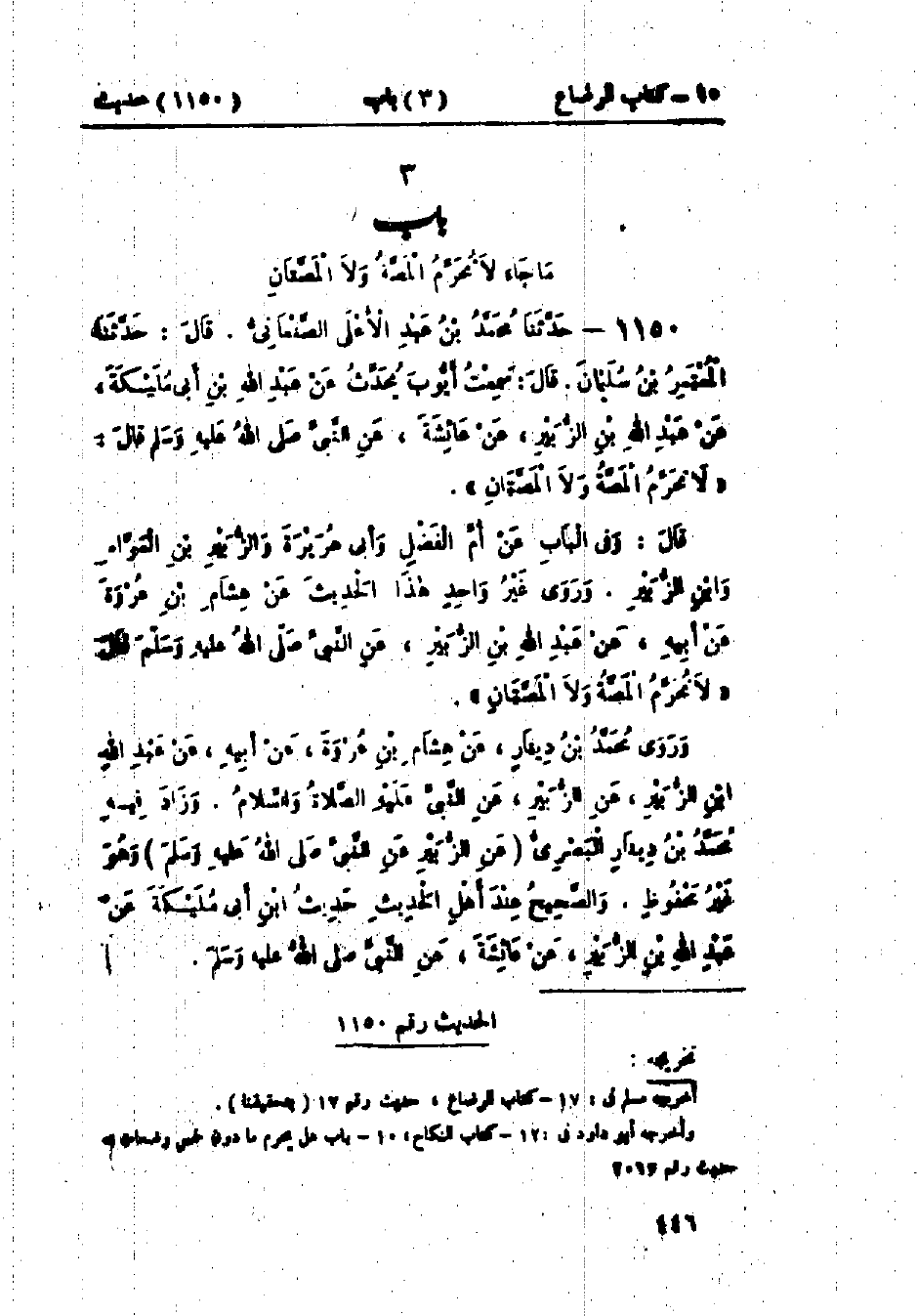 1149 - حَدَّثَنَا قُتَيْبَةُ قَالَ: حَدَّثَنَا مَالِكٌ، ح وحَدَّثَنَا الأَنْصَارِيُّ قَالَ: حَدَّثَنَا مَعْنٌ، قَالَ: حَدَّثَنَا مَالِكٌ، عَنْ ابْنِ شِهَابٍ، عَنْ عَمْرِو بْنِ الشَّرِيدِ، عَنْ ابْنِ عَبَّاسٍ، أَنَّهُ سُئِلَ عَنْ رَجُلٍ لَهُ جَارِيتَانِ أَرْضَعَتْ إِحْدَاهُمَا جَارِيَةً، وَالأُخْرَى غُلَامًا، أَيَحِلُّ لِلْغُلَامِ أَنْ يَتَزَوَّجَ بِالجَارِيَةِ؟ فَقَالَ: «لَا، §اللِّقَاحُ وَاحِدٌ»: «وَهَذَا تَفْسِيرُ لَبَنِ الفَحْلِ، وَهَذَا الأَصْلُ فِي هَذَا البَابِ، وَهُوَ قَوْلُ أَحْمَدَ، وَإِسْحَاقَ»
