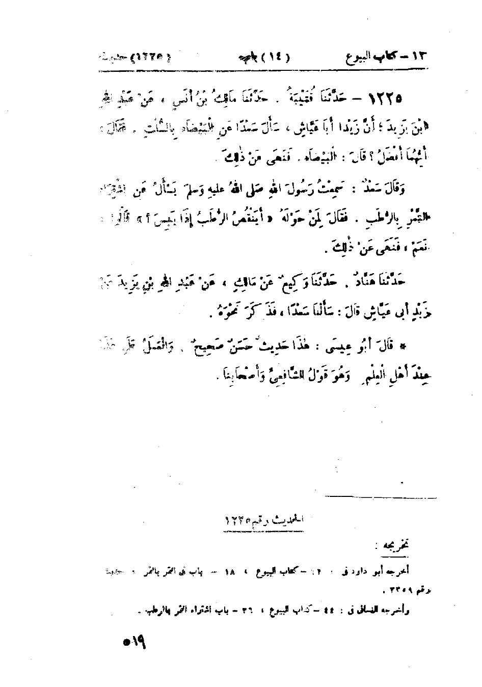 1224 - حَدَّثَنَا قُتَيْبَةُ قَالَ: حَدَّثَنَا يَعْقُوبُ بْنُ عَبْدِ الرَّحْمَنِ الإِسْكَنْدَرَانِيُّ، عَنْ سُهَيْلِ بْنِ أَبِي صَالِحٍ، عَنْ أَبِيهِ، عَنْ أَبِي هُرَيْرَةَ قَالَ: «§نَهَى رَسُولُ اللَّهِ صَلَّى اللَّهُ عَلَيْهِ وَسَلَّمَ عَنِ المُحَاقَلَةِ، وَالمُزَابَنَةِ» وَفِي البَاب عَنْ ابْنِ عُمَرَ، وَابْنِ عَبَّاسٍ، وَزَيْدِ بْنِ ثَابِتٍ، وَسَعْدٍ، وَجَابِرٍ، وَرَافِعِ بْنِ خَدِيجٍ، وَأَبِي سَعِيدٍ.: «حَدِيثُ أَبِي هُرَيْرَةَ حَدِيثٌ حَسَنٌ صَحِيحٌ» وَالمُحَاقَلَةُ: بَيْعُ الزَّرْعِ بِالحِنْطَةِ، وَالمُزَابَنَةُ: بَيْعُ الثَّمَرِ عَلَى رُءُوسِ النَّخْلِ بِالتَّمْرِ، وَالعَمَلُ عَلَى هَذَا عِنْدَ أَكْثَرِ أَهْلِ العِلْمِ: كَرِهُوا بَيْعَ المُحَاقَلَةِ، وَالمُزَابَنَةِ "
