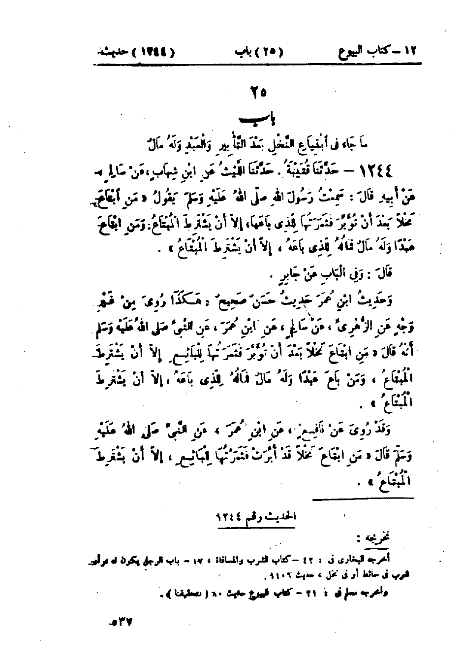 1243 - حَدَّثَنَا قُتَيْبَةُ قَالَ: حَدَّثَنَا اللَّيْثُ، عَنْ ابْنِ شِهَابٍ، عَنْ مَالِكِ بْنِ أَوْسِ بْنِ الحَدَثَانِ، أَنَّهُ قَالَ: أَقْبَلْتُ أَقُولُ مَنْ يَصْطَرِفُ الدَّرَاهِمَ، فَقَالَ طَلْحَةُ بْنُ عُبَيْدِ اللَّهِ وَهُوَ عِنْدَ عُمَرَ بْنِ الخَطَّابِ: أَرِنَا ذَهَبَكَ، ثُمَّ ائْتِنَا إِذَا جَاءَ خَادِمُنَا نُعْطِكَ وَرِقَكَ، فَقَالَ عُمَرُ: كَلَّا وَاللَّهِ، لَتُعْطِيَنَّهُ وَرِقَهُ أَوْ لَتَرُدَّنَّ إِلَيْهِ ذَهَبَهُ، فَإِنَّ رَسُولَ اللَّهِ صَلَّى اللَّهُ عَلَيْهِ وَسَلَّمَ قَالَ: «§الوَرِقُ بِالذَّهَبِ رِبًا إِلَّا هَاءَ وَهَاءَ، وَالبُرُّ بِالبُرِّ رِبًا إِلَّا هَاءَ وَهَاءَ، وَالشَّعِيرُ بِالشَّعِيرِ رِبًا إِلَّا هَاءَ وَهَاءَ، وَالتَّمْرُ بِالتَّمْرِ رِبًا إِلَّا هَاءَ وَهَاءَ»: هَذَا حَدِيثٌ حَسَنٌ صَحِيحٌ، وَالعَمَلُ عَلَى هَذَا عِنْدَ أَهْلِ العِلْمِ وَمَعْنَى قَوْلِهِ: إِلَّا هَاءَ وَهَاءَ، يَقُولُ: «يَدًا بِيَدٍ»
