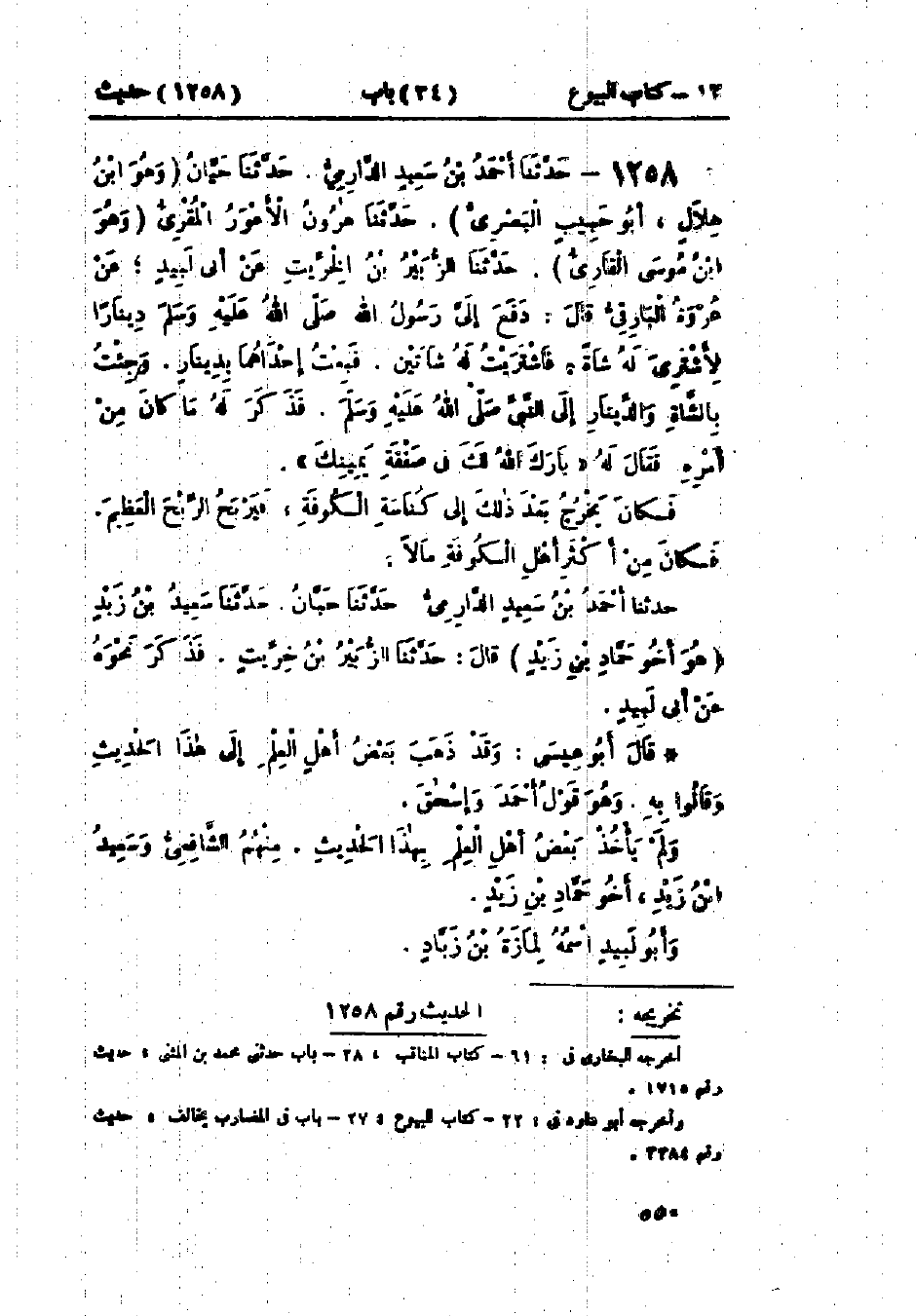 1257 - حَدَّثَنَا أَبُو كُرَيْبٍ قَالَ: حَدَّثَنَا أَبُو بَكْرِ بْنُ عَيَّاشٍ، عَنْ أَبِي حُصَيْنٍ، عَنْ حَبِيبِ بْنِ أَبِي ثَابِتٍ، عَنْ حَكِيمِ بْنِ حِزَامٍ، أَنَّ رَسُولَ اللَّهِ صَلَّى اللَّهُ عَلَيْهِ وَسَلَّمَ §بَعَثَ حَكِيمَ بْنَ حِزَامٍ يَشْتَرِي لَهُ أُضْحِيَّةً بِدِينَارٍ، فَاشْتَرَى أُضْحِيَّةً، فَأُرْبِحَ فِيهَا دِينَارًا، فَاشْتَرَى أُخْرَى مَكَانَهَا، فَجَاءَ بِالأُضْحِيَّةِ وَالدِّينَارِ إِلَى رَسُولِ اللَّهِ صَلَّى اللَّهُ عَلَيْهِ وَسَلَّمَ، فَقَالَ: «ضَحِّ بِالشَّاةِ، وَتَصَدَّقْ بِالدِّينَارِ»: حَدِيثُ حَكِيمِ بْنِ حِزَامٍ لَا نَعْرِفُهُ إِلَّا مِنْ هَذَا الوَجْهِ، وَحَبِيبُ بْنُ أَبِي ثَابِتٍ لَمْ يَسْمَعْ عِنْدِي مِنْ حَكِيمِ بْنِ حِزَامٍ