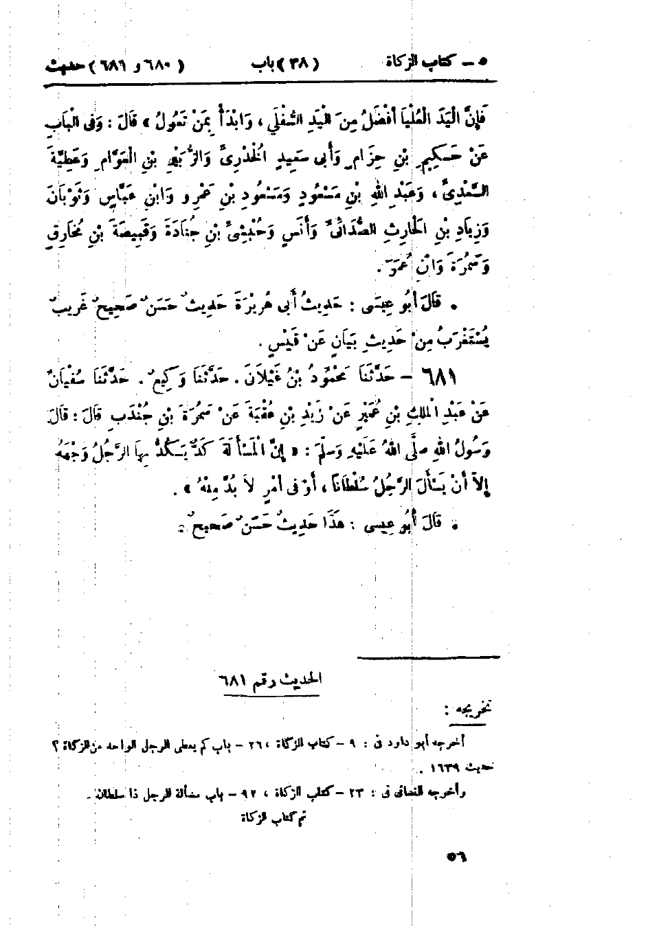 681 - حَدَّثَنَا مَحْمُودُ بْنُ غَيْلَانَ قَالَ: حَدَّثَنَا وَكِيعٌ قَالَ: حَدَّثَنَا سُفْيَانُ، عَنْ عَبْدِ المَلِكِ بْنِ عُمَيْرٍ، عَنْ زَيْدِ بْنِ عُقْبَةَ، عَنْ سَمُرَةَ بْنِ جُنْدَبٍ قَالَ: قَالَ رَسُولُ اللَّهِ صَلَّى اللَّهُ عَلَيْهِ وَسَلَّمَ: «إِنَّ §المَسْأَلَةَ كَدٌّ يَكُدُّ بِهَا الرَّجُلُ وَجْهَهُ، إِلَّا أَنْ يَسْأَلَ الرَّجُلُ سُلْطَانًا، أَوْ فِي أَمْرٍ لَا بُدَّ مِنْهُ»: «هَذَا حَدِيثٌ حَسَنٌ صَحِيحٌ»