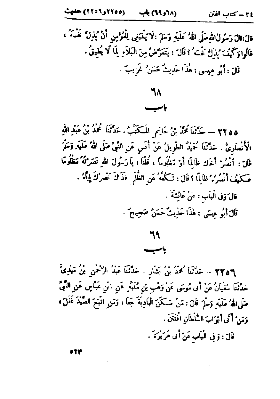 2255 - حَدَّثَنَا مُحَمَّدُ بْنُ حَاتِمٍ قَالَ: حَدَّثَنَا مُحَمَّدُ بْنُ عَبْدِ اللَّهِ الأَنْصَارِيُّ قَالَ: حَدَّثَنَا حُمَيْدٌ الطَّوِيلُ، عَنْ أَنَسٍ، عَنِ النَّبِيِّ صَلَّى اللَّهُ عَلَيْهِ وَسَلَّمَ قَالَ: «§انْصُرْ أَخَاكَ ظَالِمًا أَوْ مَظْلُومًا»، قُلْنَا: يَا رَسُولَ اللَّهِ، نَصَرْتُهُ مَظْلُومًا فَكَيْفَ أَنْصُرُهُ ظَالِمًا؟ قَالَ: «تَكُفُّهُ عَنِ الظُّلْمِ، فَذَاكَ نَصْرُكَ إِيَّاهُ» وَفِي البَاب عَنْ عَائِشَةَ: هَذَا حَدِيثٌ حَسَنٌ صَحِيحٌ
