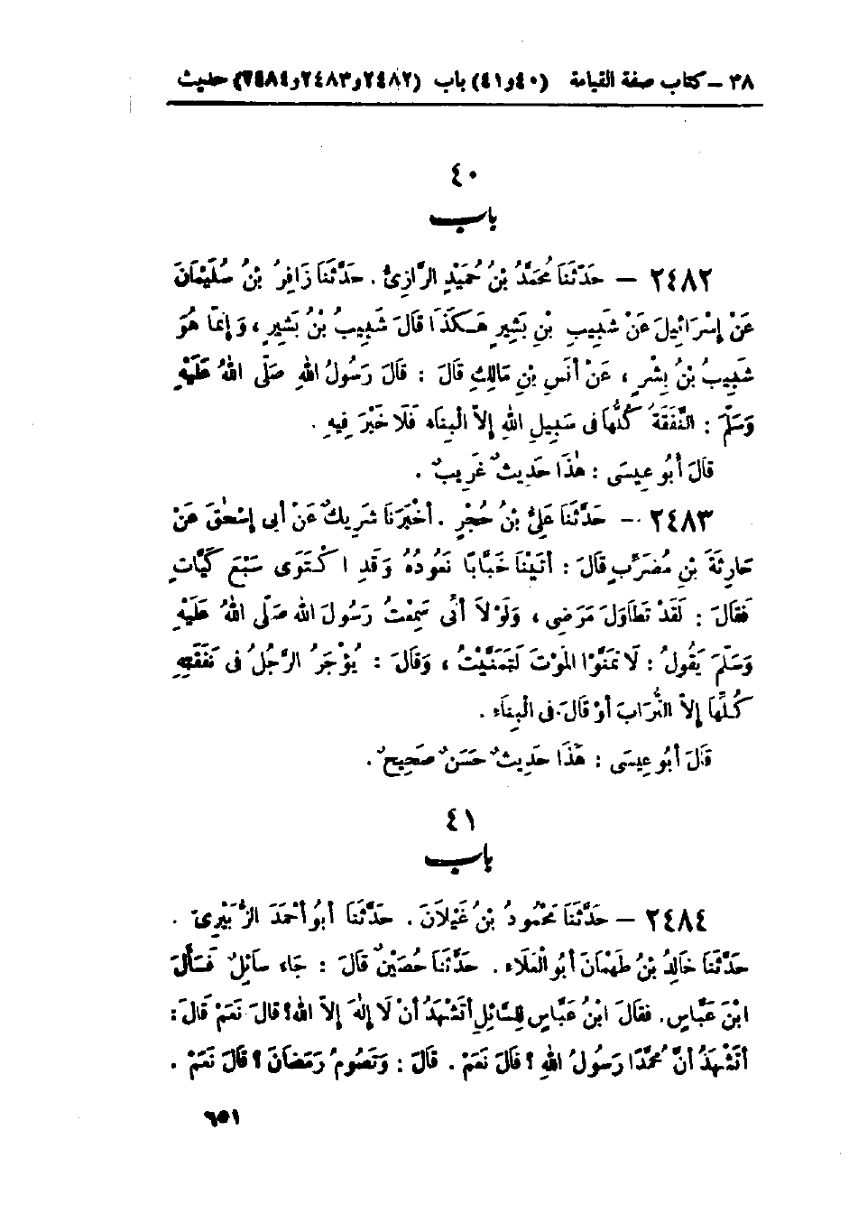 2482 - حَدَّثَنَا مُحَمَّدُ بْنُ حُمَيْدٍ الرَّازِيُّ قَالَ: حَدَّثَنَا زَافِرُ بْنُ سُلَيْمَانَ، عَنْ إِسْرَائِيلَ، عَنْ شَبِيبِ بْنِ بَشِيرٍ - هَكَذَا قَالَ مُحَمَّدُ بْنُ حُمَيْدٍ: شَبِيبُ بْنُ بَشِيرٍ، وَإِنَّمَا هُوَ شَبِيبُ بْنُ بِشْرٍ - عَنْ أَنَسِ بْنِ مَالِكٍ، قَالَ: قَالَ رَسُولُ اللَّهِ صَلَّى اللَّهُ عَلَيْهِ وَسَلَّمَ «§النَّفَقَةُ كُلُّهَا فِي سَبِيلِ اللَّهِ إِلَّا البِنَاءَ فَلَا خَيْرَ فِيهِ»: «هَذَا حَدِيثٌ غَرِيبٌ»