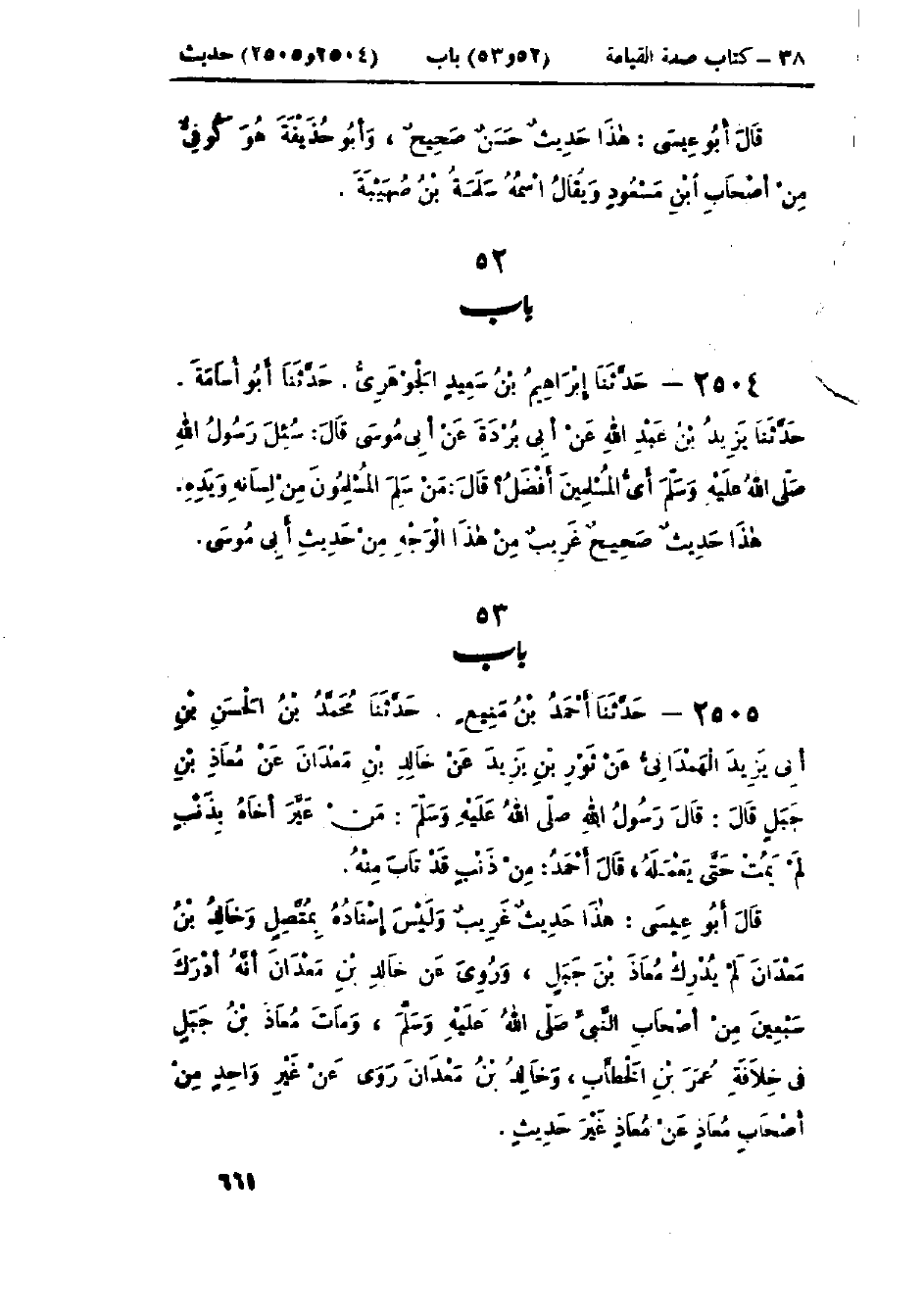 2504 - حَدَّثَنَا إِبْرَاهِيمُ بْنُ سَعِيدٍ الجَوْهَرِيُّ قَالَ: حَدَّثَنَا أَبُو أُسَامَةَ قَالَ: حَدَّثَنَا بُرَيْدُ بْنُ عَبْدِ اللَّهِ، عَنْ أَبِي بُرْدَةَ، عَنْ أَبِي مُوسَى، قَالَ: سُئِلَ رَسُولُ اللَّهِ صَلَّى اللَّهُ عَلَيْهِ وَسَلَّمَ أَيُّ المُسْلِمِينَ أَفْضَلُ؟ قَالَ: «§مَنْ سَلِمَ المُسْلِمُونَ مِنْ لِسَانِهِ وَيَدِهِ» هَذَا حَدِيثٌ صَحِيحٌ غَرِيبٌ مِنْ هَذَا الوَجْهِ مِنْ حَدِيثِ أَبِي مُوسَى "