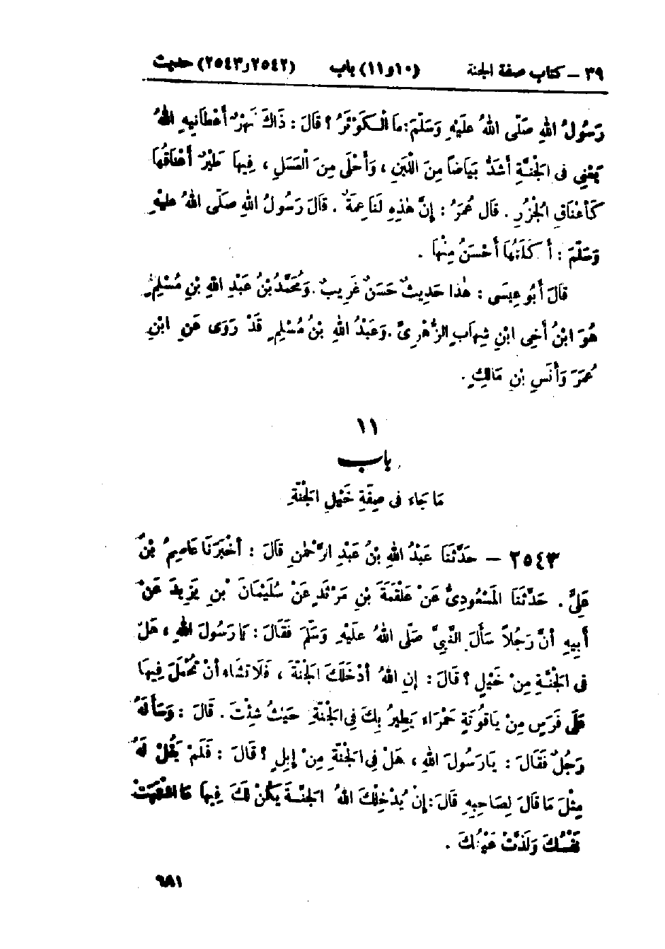 بَابُ مَا جَاءَ فِي صِفَةِ خَيْلِ الجَنَّةِ
