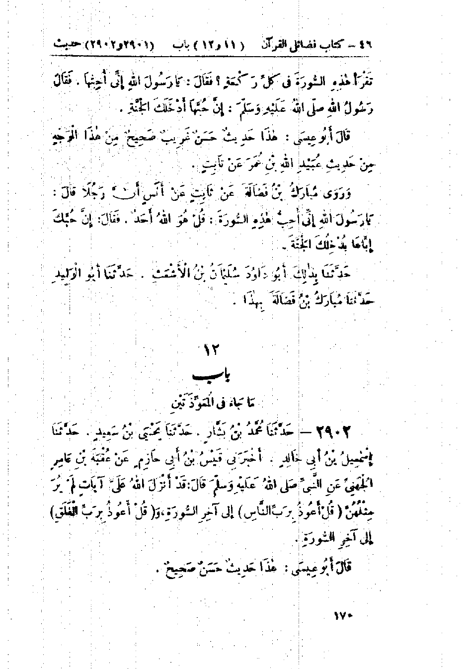 2902 - حَدَّثَنَا مُحَمَّدُ بْنُ بَشَّارٍ قَالَ: حَدَّثَنَا يَحْيَى بْنُ سَعِيدٍ قَالَ: حَدَّثَنَا إِسْمَاعِيلُ بْنُ أَبِي خَالِدٍ قَالَ: أَخْبَرَنِي قَيْسُ بْنُ أَبِي حَازِمٍ، عَنْ عُقْبَةَ بْنِ عَامِرٍ الجُهَنِيِّ، عَنِ النَّبِيِّ صَلَّى اللَّهُ عَلَيْهِ وَسَلَّمَ قَالَ: " §قَدْ أَنْزَلَ اللَّهُ عَلَيَّ آيَاتٍ لَمْ يُرَ مِثْلُهُنَّ {قُلْ أَعُوذُ بِرَبِّ النَّاسِ} [الناس: 1] إِلَى آخِرِ السُّورَةِ، وَ {قُلْ أَعُوذُ بِرَبِّ الفَلَقِ} [الفلق: 1] إِلَى آخِرِ السُّورَةِ ": «هَذَا حَدِيثٌ حَسَنٌ صَحِيحٌ»