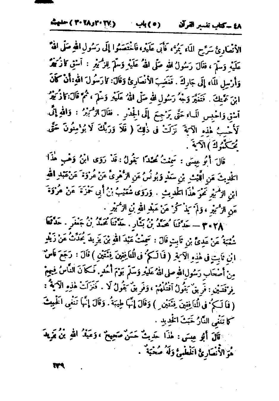 3028 - حَدَّثَنَا مُحَمَّدُ بْنُ بَشَّارٍ قَالَ: حَدَّثَنَا مُحَمَّدُ بْنُ جَعْفَرٍ قَالَ: حَدَّثَنَا شُعْبَةُ، عَنْ عَدِيِّ بْنِ ثَابِتٍ، قَالَ: سَمِعْتُ عَبْدَ اللَّهِ بْنَ يَزِيدَ، يُحَدِّثُ عَنْ زَيْدِ بْنِ ثَابِتٍ، فِي هَذِهِ الآيَةِ {فَمَا لَكُمْ فِي المُنَافِقِينَ فِئَتَيْنِ} [النساء: 88] قَالَ: " رَجَعَ نَاسٌ مِنْ أَصْحَابِ رَسُولِ اللَّهِ صَلَّى اللَّهُ عَلَيْهِ وَسَلَّمَ يَوْمَ أُحُدٍ، فَكَانَ النَّاسُ فِيهِمْ فِرْقَتَيْنِ: فَرِيقٌ مِنْهُمْ يَقُولُ: اقْتُلْهُمْ، وَفَرِيقٌ يَقُولُ: لَا، فَنَزَلَتْ هَذِهِ الْآيَةَ: {فَمَا لَكُمْ فِي الْمُنَافِقِينَ فِئَتَيْنِ} [النساء: 88] وَقَالَ: «§إِنَّهَا طِيبَةُ» وَقَالَ: «إِنَّهَا تَنْفِي الْخَبَثَ كَمَا تَنْفِي النَّارُ خَبَثَ الْحَدِيدِ»: " هَذَا حَدِيثٌ حَسَنٌ صَحِيحٌ، وَعَبْدُ اللَّهِ بْنُ يَزِيَدَ هُوَ: الْأَنْصَارِيُّ الْخَطْمِيُّ وَلَهُ صُحْبَةٌ "