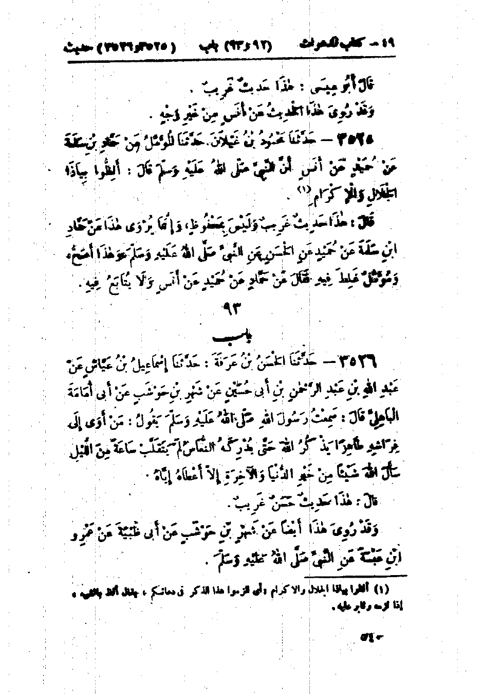 3525 - حَدَّثَنَا مَحْمُودُ بْنُ غَيْلَانَ قَالَ: حَدَّثَنَا الْمُؤَمَّلُ، عَنْ حَمَّادِ بْنِ سَلَمَةَ، عَنْ حُمَيْدٍ، عَنْ أَنَسٍ، أَنَّ النَّبِيَّ صَلَّى اللَّهُ عَلَيْهِ وَسَلَّمَ قَالَ: «§أَلِظُّوا بِيَا ذَا الجَلَالِ وَالإِكْرَامِ».: هَذَا حَدِيثٌ غَرِيبٌ وَلَيْسَ بِمَحْفُوظٍ. وَإِنَّمَا يُرْوَى هَذَا عَنْ حَمَّادِ بْنِ سَلَمَةَ، عَنْ حُمَيْدٍ، عَنِ الحَسَنِ البَصْرِيِّ، عَنِ النَّبِيِّ صَلَّى اللَّهُ عَلَيْهِ وَسَلَّمَ، وَهَذَا أَصَحُّ. وَمُؤَمَّلٌ غَلِطَ فِيهِ فَقَالَ: عَنْ حُمَيْدٍ، عَنْ أَنَسٍ، وَلَا يُتَابَعُ فِيهِ