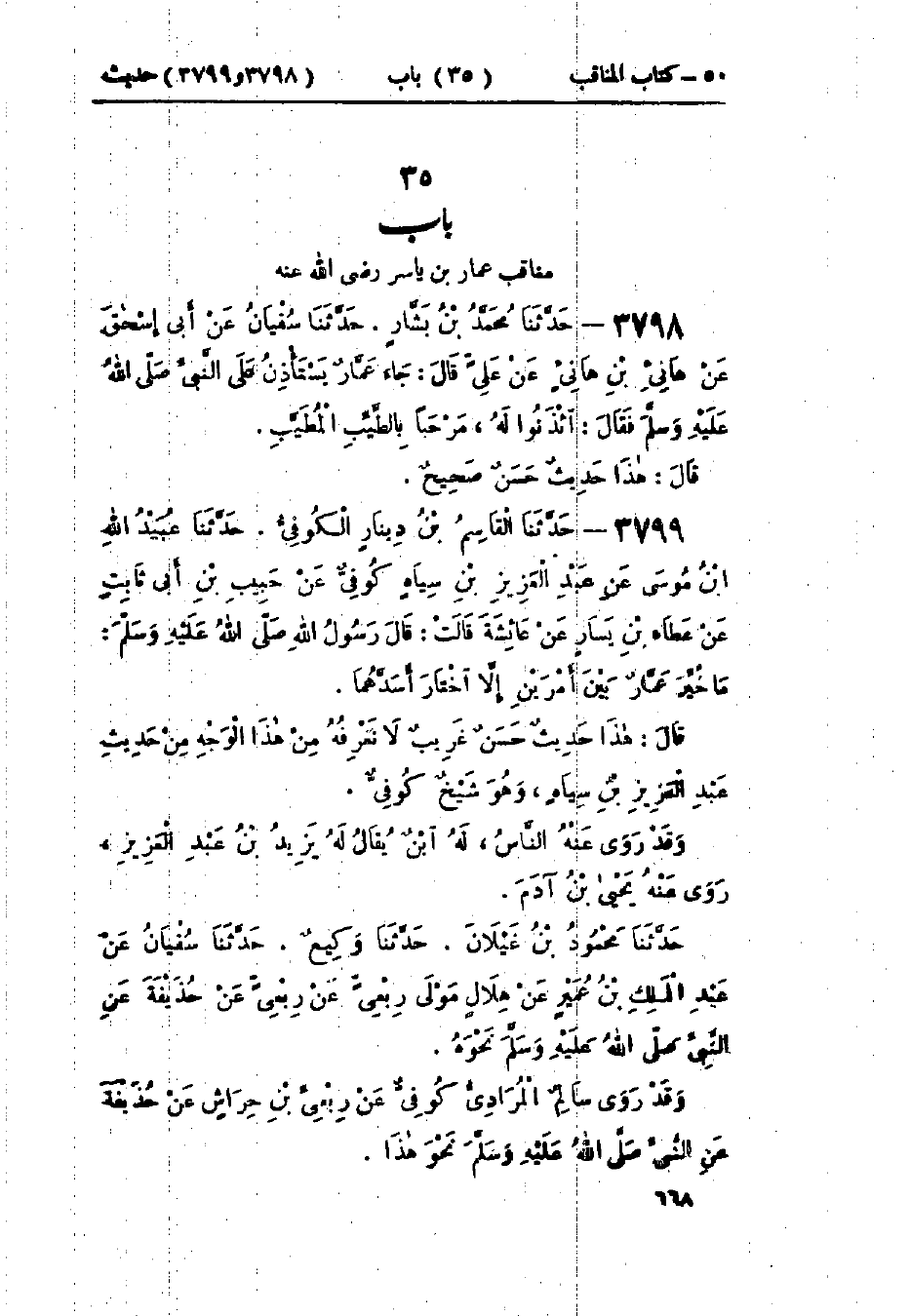 3798 - حَدَّثَنَا مُحَمَّدُ بْنُ بَشَّارٍ قَالَ: حَدَّثَنَا عَبْدُ الرَّحْمَنِ بْنُ مَهْدِيٍّ قَالَ: حَدَّثَنَا سُفْيَانُ، عَنْ أَبِي إِسْحَاقَ، عَنْ هَانِئِ بْنِ هَانِئٍ، عَنْ عَلِيٍّ، قَالَ: جَاءَ عَمَّارٌ يَسْتَأْذِنُ عَلَى النَّبِيِّ صَلَّى اللَّهُ عَلَيْهِ وَسَلَّمَ فَقَالَ: «§ائْذَنُوا لَهُ، مَرْحَبًا بِالطَّيِّبِ المُطَيَّبِ» هَذَا حَدِيثٌ حَسَنٌ صَحِيحٌ