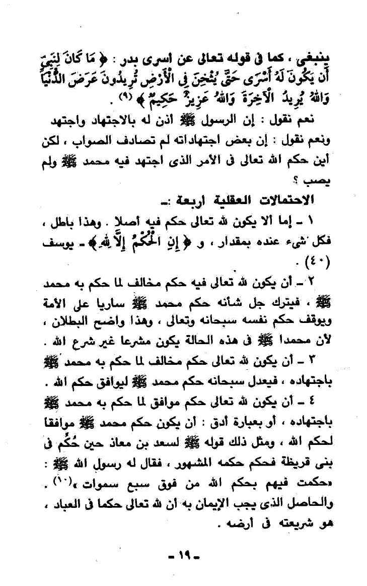 نعم نقول: إن الرسول - صَلََّى اللهُ عَلَيْهِ وَسَلَّمَ - أذن له بالاجتهاد واجتهد ونعم نقول: إنَّ بعض اجتهاداته لم تصادف الصواب، لكن أين حكم الله تعالى في الأمر الذي اجتهد فيه محمد - صَلََّى اللهُ عَلَيْهِ وَسَلَّمَ - ولم يصب؟
