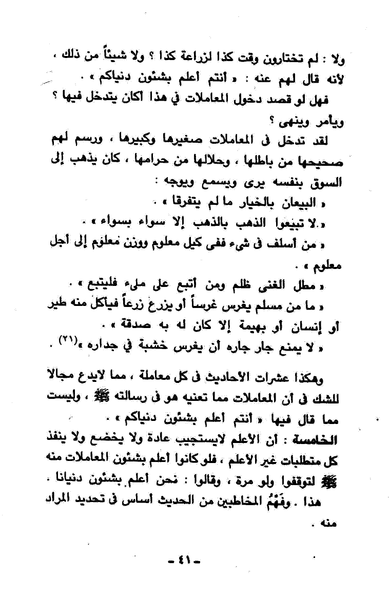 وهكذا عشرات الأحاديث فيكل معاملة، مما لا يدع مجالاً للشك في أنَّ المعاملات مما تعنيه هو في رسالته - صَلََّى اللهُ عَلَيْهِ وَسَلَّمَ -، وليست مما قال فيها: «أَنْتُمْ أَعْلَمُ بِشُؤُونِ دُنْيَاكُمْ».