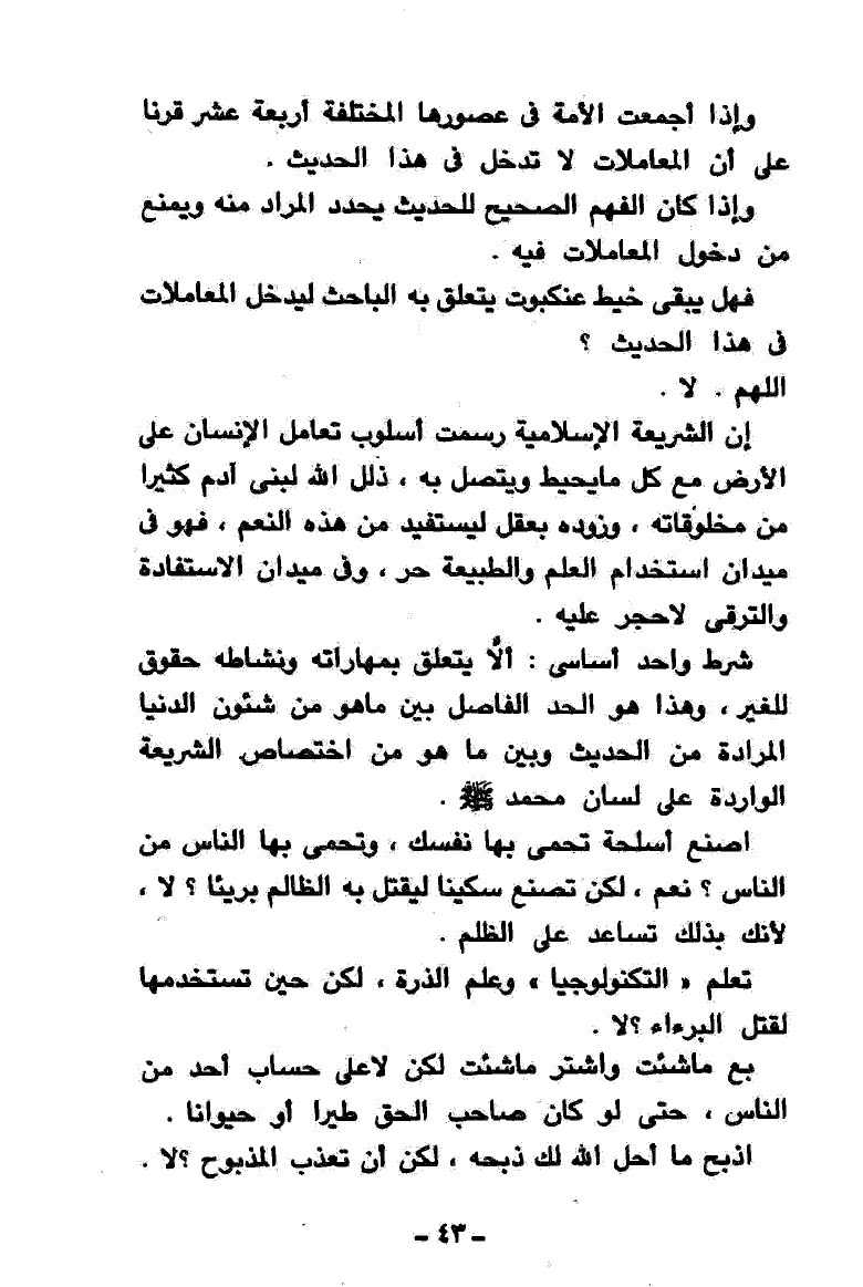 تعلَّم «التكنولوجيا» وعلم الذَرَّة، لكن حين تستخدمها لقتل البُرَءَاءِ؟ لا.