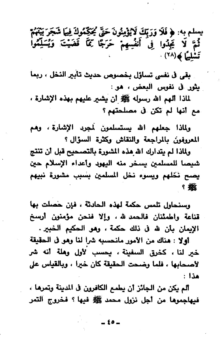 ولماذا لم يتدارك الله بهذه المشورة بالتصحيح قبل أنْ تنتج شيصاً للمسلمين يسخر منه اليهود وأعداء الإسلام حين يصح نخلهم ويسوء نخل المسلمين بسبب مشورة نبيِّهِم - صَلََّى اللهُ عَلَيْهِ وَسَلَّمَ -.