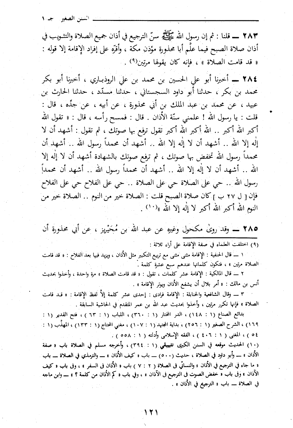 285 - وَقَدْ رَوَى مَكْحُولٌ، وَغَيْرُهُ، عَنْ عَبْدِ اللَّهِ بْنِ مُحَيْرِيزٍ، عَنْ أَبِي مَحْذُورَةَ، § «أَنَّ -[120]- النَّبِيَّ صَلَّى اللهُ عَلَيْهِ وَسَلَّمَ عَلَّمَهُ الْأَذَانَ فَكَانَ فِيمَا عَلَّمَهُ التَّرْجِيعُ فِي كَلِمَتِي الشَّهَادَةِ»