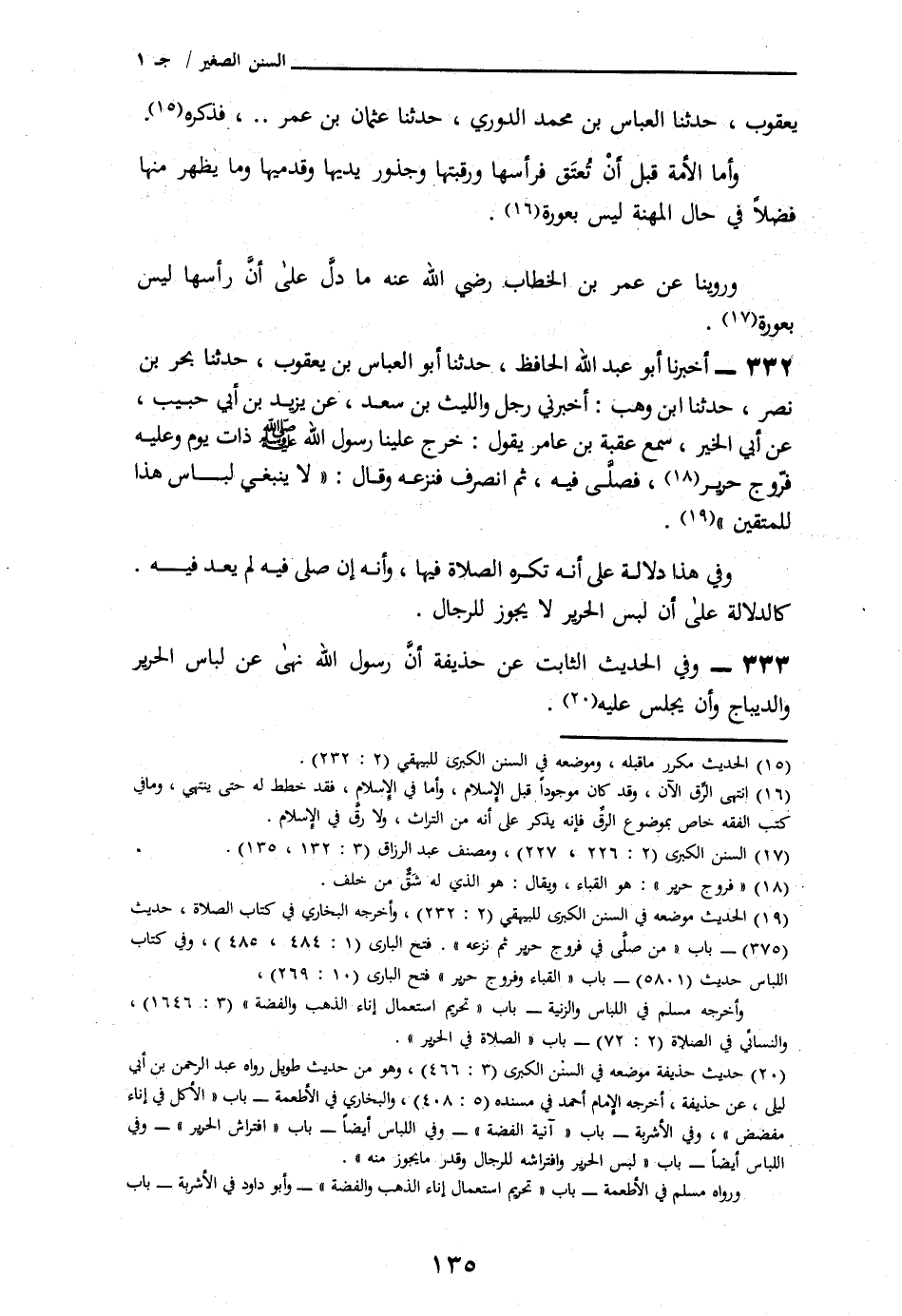 333 - وَفِي الْحَدِيثِ الثَّابِتِ عَنْ حُذَيْفَةَ، أَنَّ رَسُولَ اللَّهِ صَلَّى اللهُ عَلَيْهِ وَسَلَّمَ § «نَهَانَا عَنْ لُبْسِ الْحَرِيرِ وَالدِّيبَاجِ، وَأَنْ نَجْلِسَ عَلَيْهِ»
