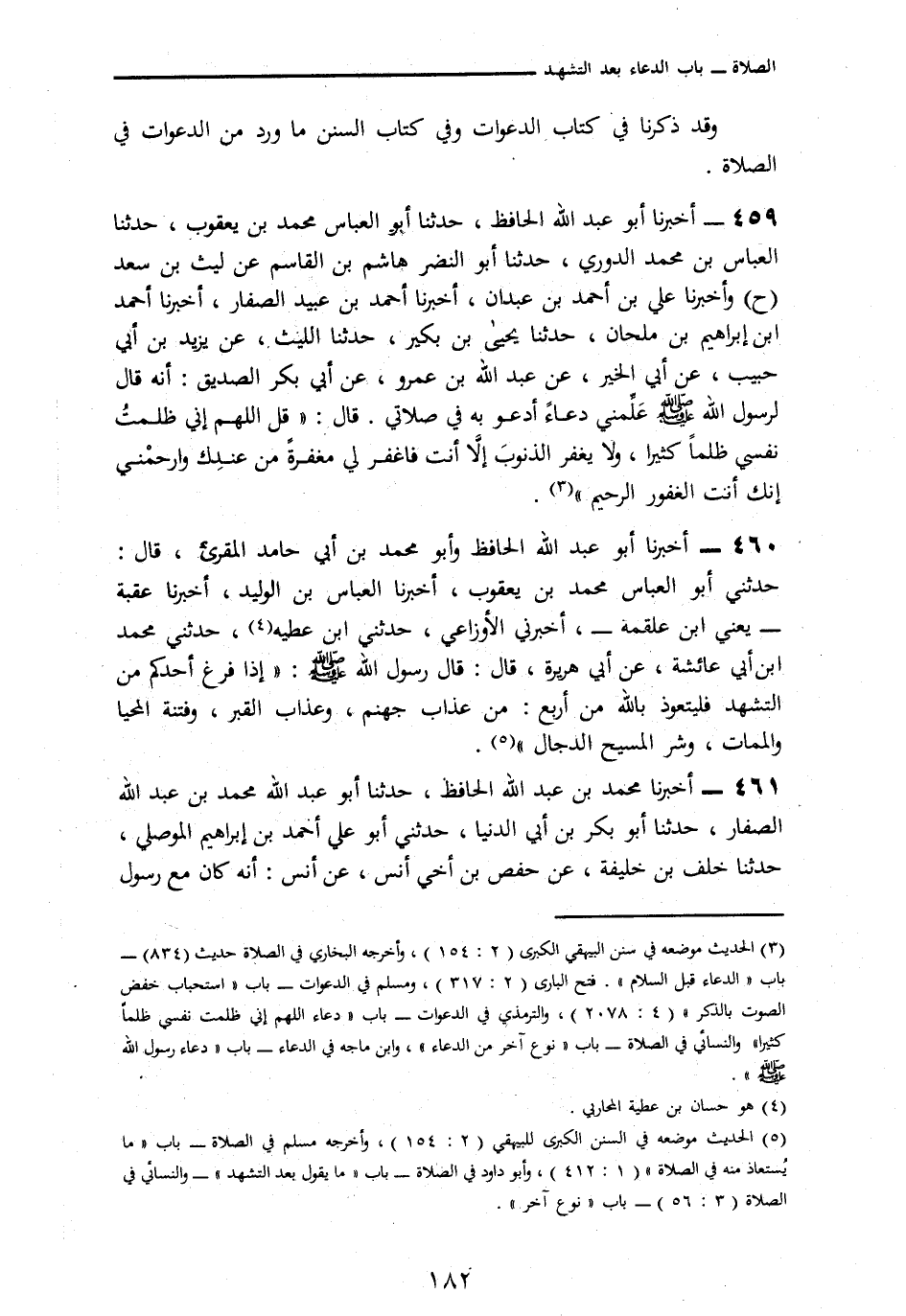 459 - وَأَخْبَرَنَا عَلِيُّ بْنُ أَحْمَدَ بْنِ عَبْدَانَ، أنا أَحْمَدُ بْنُ عُبَيْدٍ الصَّفَّارُ، أنا أَحْمَدُ بْنُ إِبْرَاهِيمَ بْنِ مِلْحَانَ، نا يَحْيَى بْنُ بُكَيْرٍ، نا اللَّيْثُ، عَنْ يَزِيدَ بْنِ حَبِيبٍ، عَنْ أَبِي الْخَيْرِ، عَنْ عَبْدِ اللَّهِ بْنِ عَمْرٍو، عَنْ أَبِي بَكْرٍ الصِّدِّيقِ، أَنَّهُ قَالَ لِرَسُولِ اللَّهِ صَلَّى اللهُ عَلَيْهِ وَسَلَّمَ: §عَلِّمْنِي دُعَاءً أَدْعُو بِهِ فِي صَلَاتِي. قَالَ: " قُلِ: اللَّهُمَّ إِنِّي ظَلَمْتُ نَفْسِي ظُلْمًا كَثِيرًا، وَلَا يَغْفِرُ الذُّنُوبَ إِلَّا أَنْتَ، فَاغْفِرْ لِي مَغْفِرَةً مِنْ عِنْدِكِ، وَارْحَمْنِي إِنَّكَ أَنْتَ الْغَفُورُ الرَّحِيمُ "