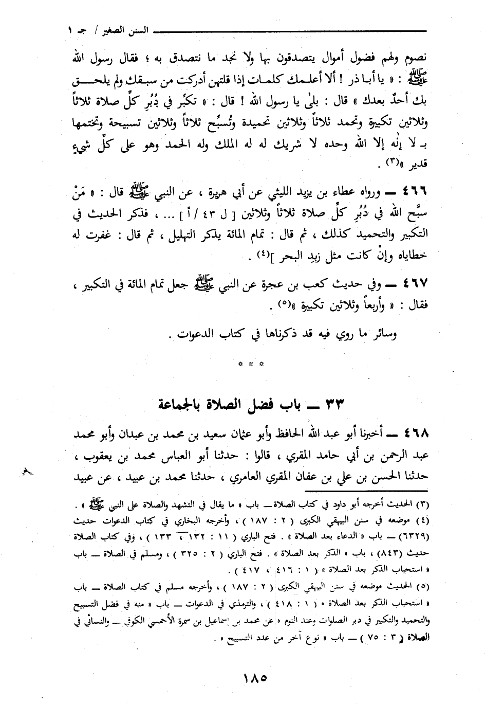 467 - وَفِي حَدِيثِ كَعْبِ بْنِ عُجْرَةَ، عَنِ النَّبِيِّ صَلَّى اللهُ عَلَيْهِ وَسَلَّمَ جَعَلَ تَمَامَ الْمِائَةِ فِي التَّكْبِيرِ فَقَالَ: § «وَأَرْبَعًا وَثَلَاثِينَ تَكْبِيرَةً» وَسَائِرُ مَا رُوِيَ فِيهِ قَدْ ذَكَرْنَاهَا فِي كِتَابِ الدَّعَوَاتِ
