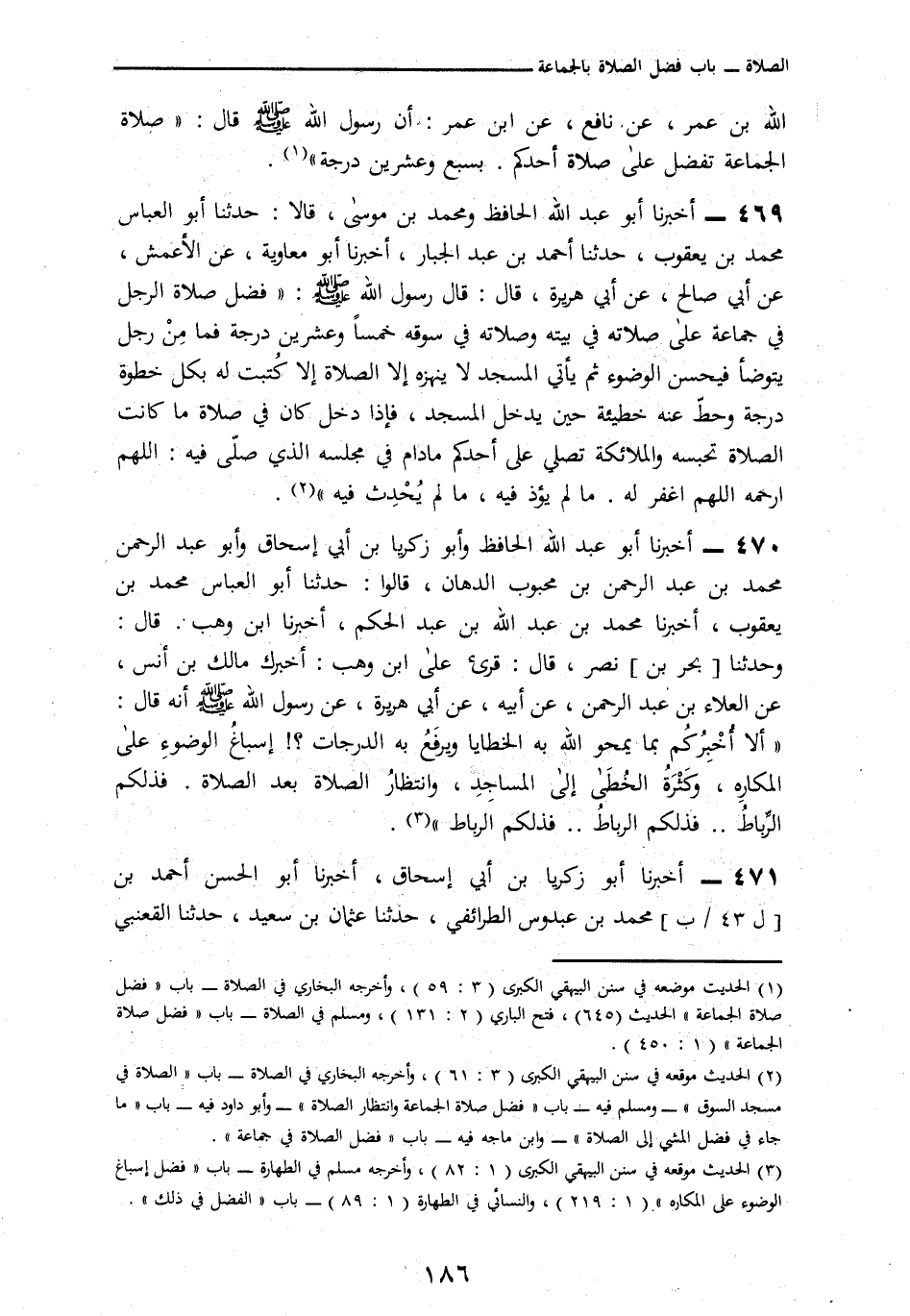 470 - أَخْبَرَنَا أَبُو عَبْدِ اللَّهِ الْحَافِظُ، وَأَبُو زَكَرِيَّا بْنُ أَبِي إِسْحَاقَ، وَأَبُو عَبْدِ الرَّحْمَنِ بْنُ مُحَمَّدِ بْنِ عَبْدِ الرَّحْمَنِ بْنِ مَحْبُوبٍ الدَّهَّانُ قَالُوا: نا أَبُو الْعَبَّاسِ مُحَمَّدُ بْنُ يَعْقُوبَ، أنا مُحَمَّدُ بْنُ عَبْدِ الرَّحْمَنِ بْنِ مَحْبُوبٍ الدَّهَّانُ، قَالُوا: نا أَبُو الْعَبَّاسِ مُحَمَّدُ بْنُ يَعْقُوبَ، أنا مُحَمَّدُ بْنُ عَبْدِ اللَّهِ بْنِ عَبْدِ الْحَكَمِ، أنا ابْنُ وَهْبٍ، قَالَ: وَحَدَّثَنَا بَحْرُ بْنُ نَصْرٍ، قَالَ: قُرِئَ عَلَى ابْنِ وَهْبٍ، أَخْبَرَكَ مَالِكُ بْنُ أَنَسٍ، عَنِ الْعَلَاءِ بْنِ عَبْدِ الرَّحْمَنِ، عَنْ أَبِيهِ، عَنْ أَبِي هُرَيْرَةَ، عَنْ رَسُولِ اللَّهِ صَلَّى اللهُ عَلَيْهِ وَسَلَّمَ أَنَّهُ قَالَ: § «أَلَا أُخْبِرُكُمْ بِمَا يَمْحُو اللَّهُ بِهِ الْخَطَايَا وَيَرْفَعُ بِهِ الدَّرَجَاتِ إِسْبَاغُ الْوُضُوءِ عَلَى الْمَكَارِهِ وَكَثْرَةُ الْخُطَا إِلَى الْمَسَاجِدِ وَانْتِظَارُ الصَّلَاةِ بَعْدَ الصَّلَاةِ فَذَلِكُمُ الرِّبَاطُ فَذَلِكُمُ الرِّبَاطُ فَذَلِكُمُ الرِّبَاطُ»