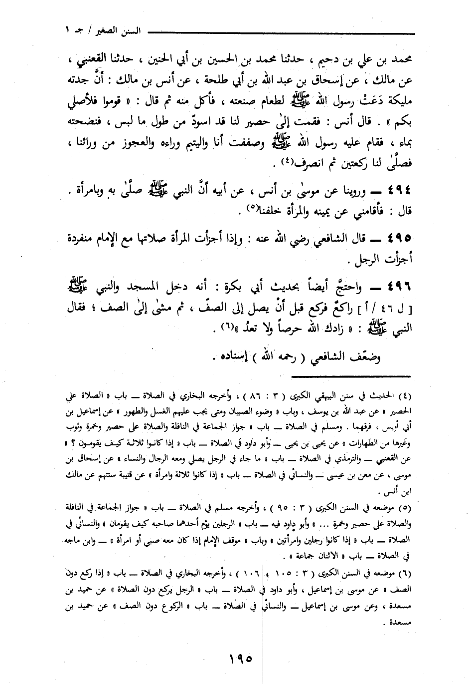 496 - وَضَعَّفَ الشَّافِعِيُّ إِسْنَادَ -[194]-