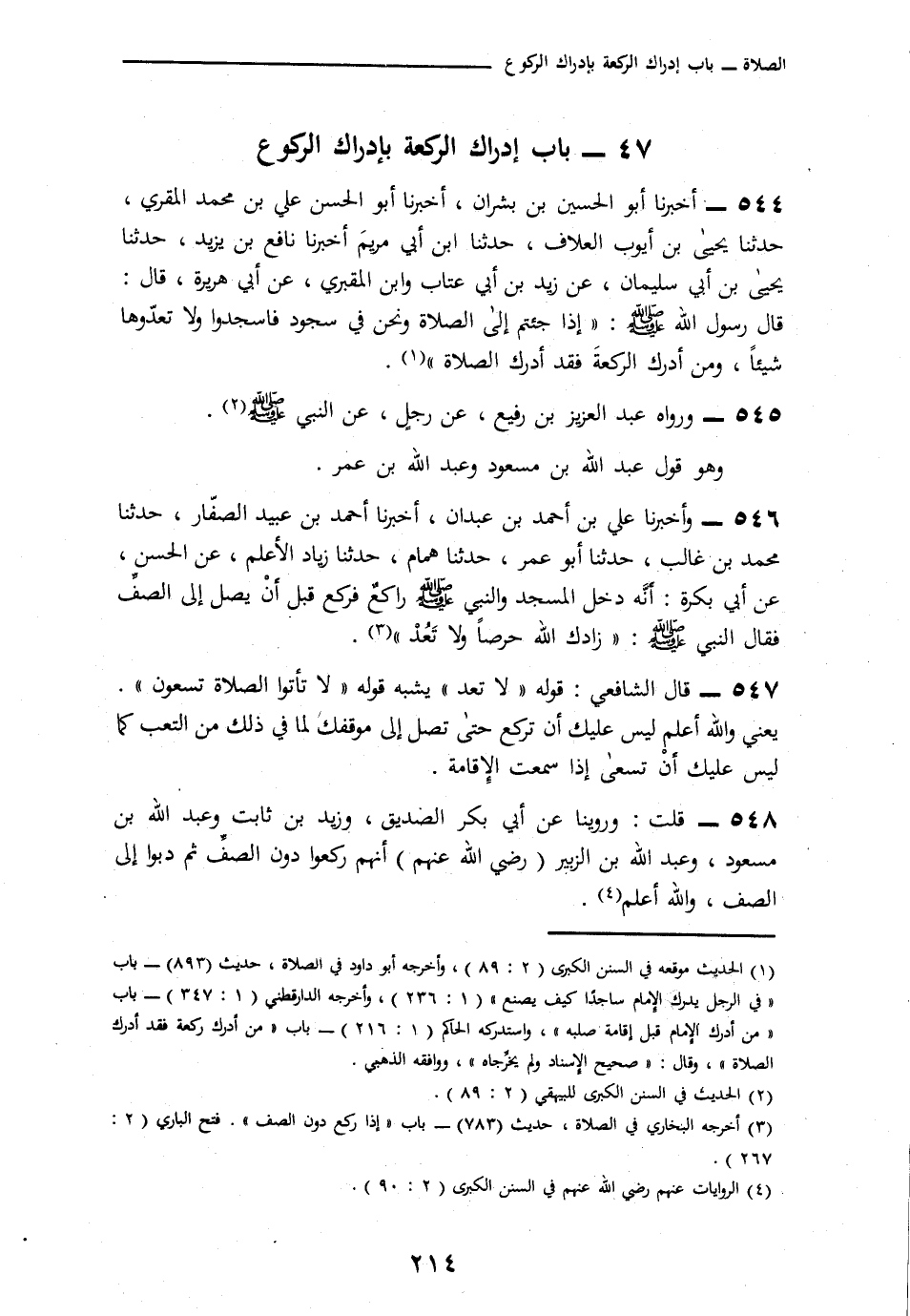 548 - قُلْتُ: رُوِّينَا عَنْ أَبِي بَكْرٍ الصِّدِّيقِ، وَزَيْدِ بْنِ ثَابِتٍ، وَعَبْدِ اللَّهِ بْنِ مَسْعُودٍ، وَعَبْدِ اللَّهِ بْنِ الزُّبَيْرٍ رَضِيَ اللَّهُ عَنْهُمْ أَنَّهُمْ § «رَكَعُوا دُونَ الصَّفِّ ثُمَّ دُبُّوا إِلَى الصَّفِّ وَاللَّهُ أَعْلَمُ»