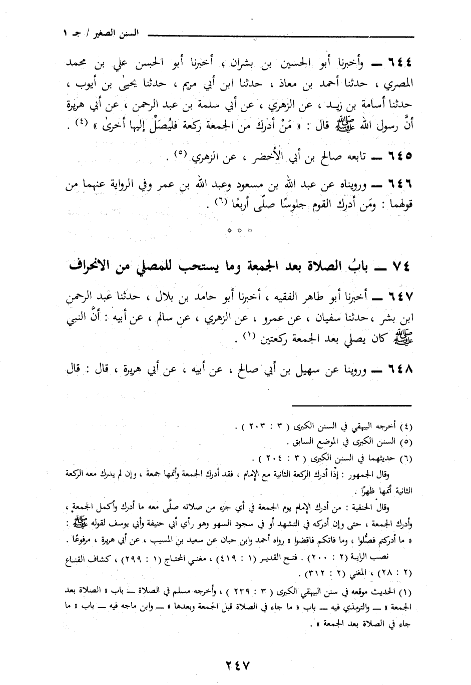647 - أَخْبَرَنَا أَبُو طَاهِرٍ الْفَقِيهُ، أنا أَبُو حَامِدِ بْنُ بِلَالٍ، نا عَبْدُ الرَّحْمَنِ بْنُ بِشْرٍ، نا سُفْيَانُ، عَنْ عَمْرٍو، عَنِ الزُّهْرِيِّ، عَنْ سَالِمٍ، عَنْ أَبِيهِ، أَنَّ النَّبِيَّ صَلَّى اللهُ عَلَيْهِ وَسَلَّمَ كَانَ § «يُصَلِّي بَعْدَ الْجُمُعَةِ رَكْعَتَيْنِ»