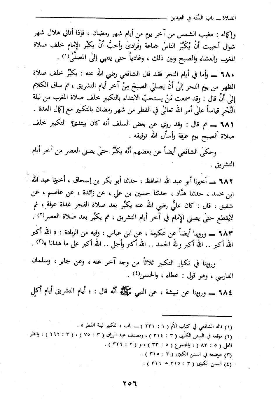 683 - وَرُوِّينَا أَيْضًا عَنْ عِكْرِمَةَ، عَنِ ابْنِ عَبَّاسٍ، وَفِيهِ مِنَ الزِّيَادَةِ: اللَّهُ أَكْبَرُ اللَّهُ أَكْبَرُ اللَّهُ أَكْبَرُ وَلِلَّهِ الْحَمْدُ اللَّهُ أَكْبَرُ وَأَجَلُّ اللَّهُ أَكْبَرُ عَلَى مَا هَدَانَا وَرُوِّينَا فِي تَكْرَارِ التَّكْبِيرِ ثَلَاثًا مِنْ وَجْهٍ آخَرَ عَنْهُ وَعَنْ جَابِرٍ وَسَلْمَانَ الْفَارِسِيِّ، وَهُوَ قَوْلُ عَطَاءٍ، وَالْحَسَنِ