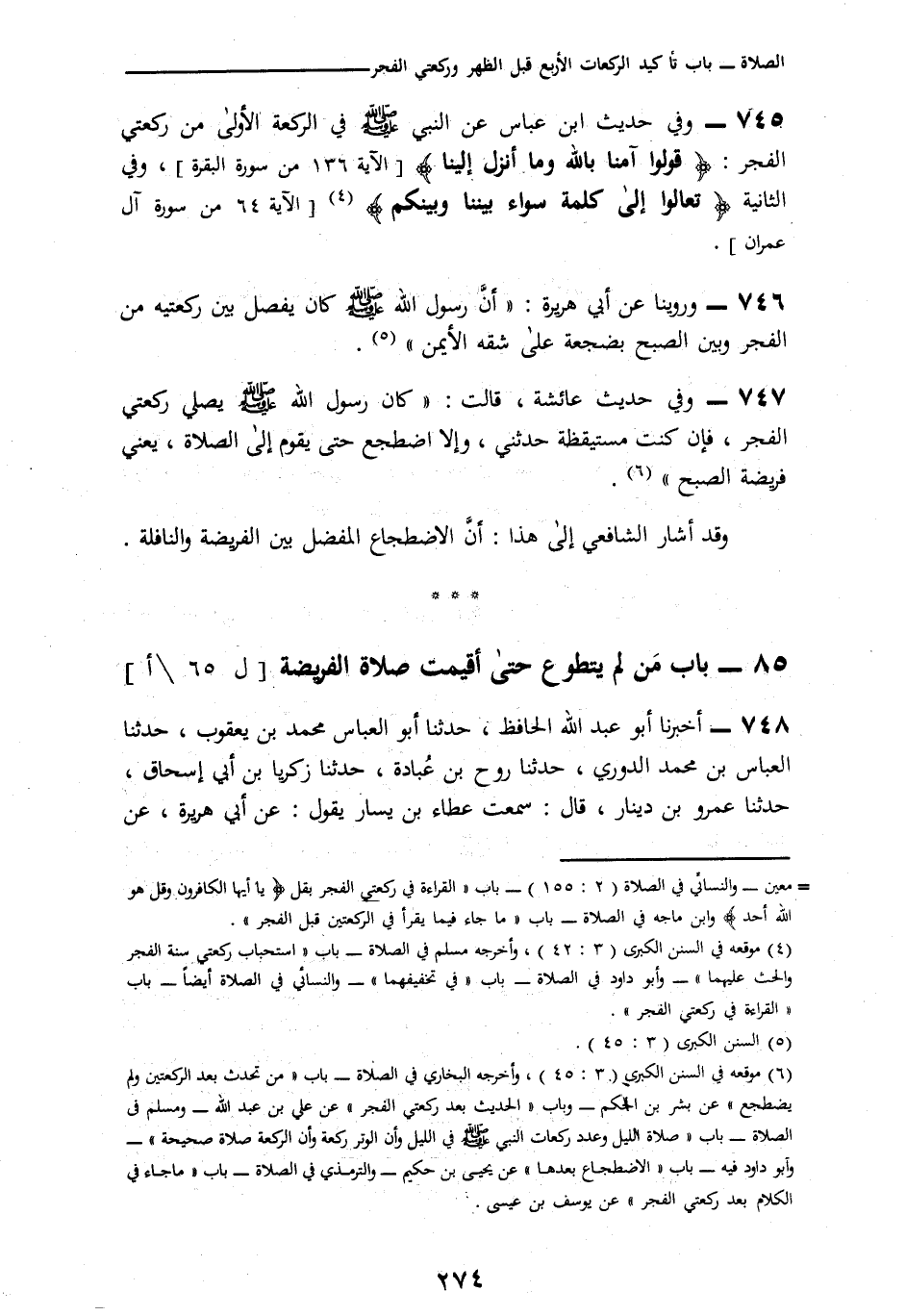 745 - وَفِي حَدِيثِ ابْنِ عَبَّاسٍ، عَنِ النَّبِيِّ صَلَّى اللهُ عَلَيْهِ وَسَلَّمَ " §فِي الرَّكْعَةِ الْأُولَى مِنْ رَكْعَتَيِ الْفَجْرِ {قُولُوا آمَّنَا بِاللَّهِ وَمَا أُنْزِلَ إِلَيْنَا} [البقرة: 136]، وَفِي الثَّانِيَةِ {تَعَالَوْا إِلَى كَلِمَةٍ سَوَاءٍ بَيْنَنَا وَبَيْنَكُمْ} [آل عمران: 64] "