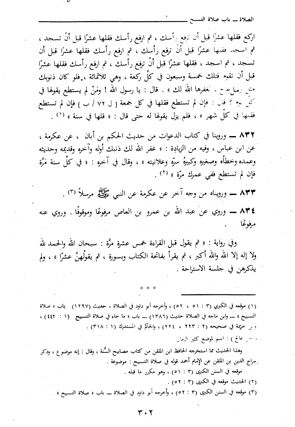 834 - وَرَوَى عَنْ عَبْدِ اللَّهِ بْنِ عَمْرِو بْنِ الْعَاصِ، مَرْفُوعًا، وَمَوْقُوفًا وَرُوِيَ عَنْهُ مَرْفُوعًا فِي رِوَايَةٍ § «ثُمَّ يَقُولُ قَبْلَ الْقِرَاءَةِ خَمْسَ عَشْرَةَ مَرَّةً سُبْحَانَ اللَّهِ وَالْحَمْدُ لِلَّهِ وَلَا إِلَهَ إِلَّا اللَّهُ وَاللَّهُ أَكْبَرُ ثُمَّ يَقْرَأُ بِفَاتِحَةِ الْكِتَابِ وَسُورَةٍ»، ثُمَّ يَقُولُهُنَّ عَشْرًا وَلَمْ يَذْكُرْهُنَّ فِي جِلْسَةِ الِاسْتِرَاحَةِ