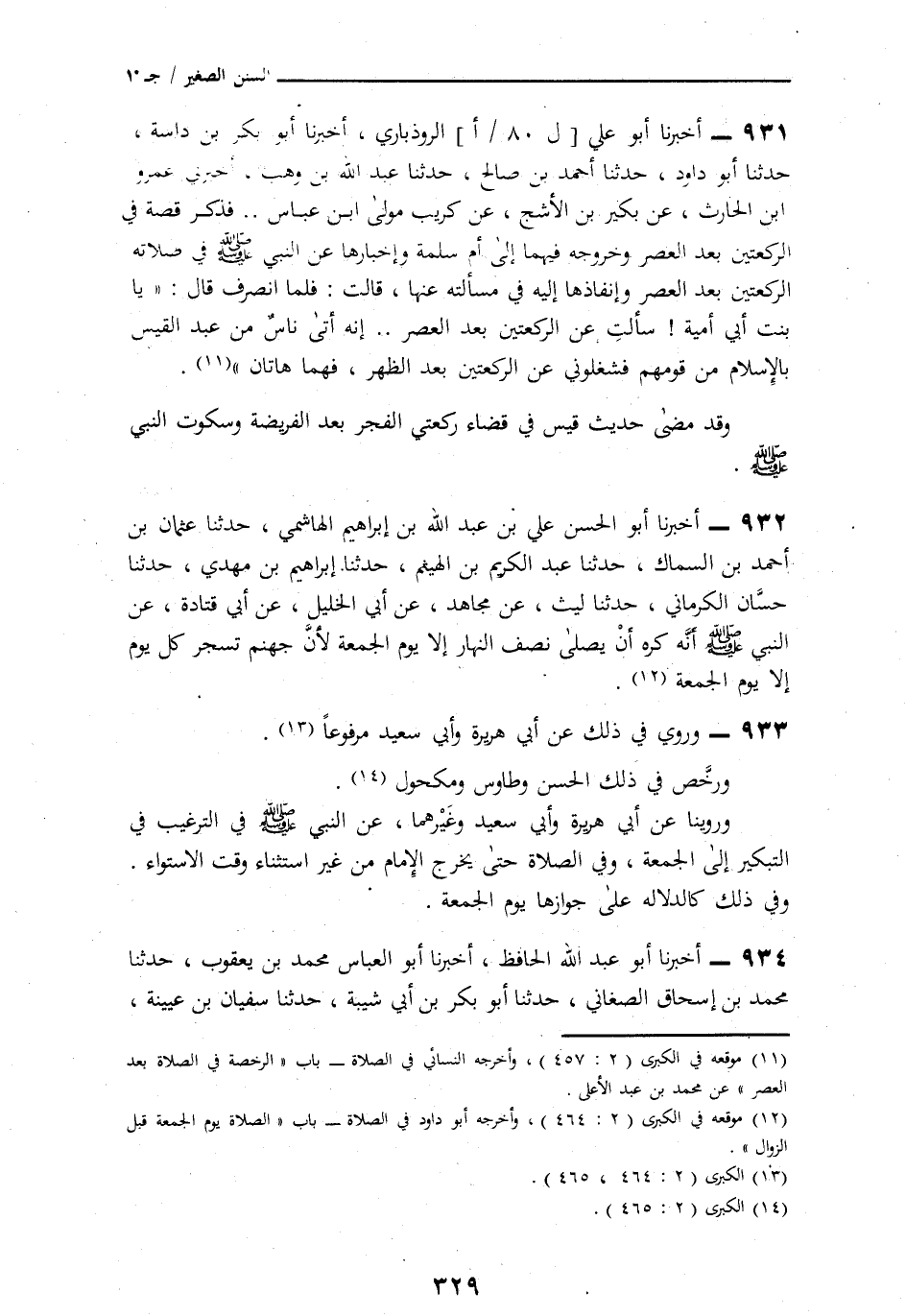 933 - وَرُوِّينَا عَنْ أَبِي هُرَيْرَةَ، وَأَبِي سَعِيدٍ وَغَيْرِهِمَا عَنِ النَّبِيِّ صَلَّى اللهُ عَلَيْهِ وَسَلَّمَ «فِي §التَّرْغِيبِ فِي التَّبْكِيرِ إِلَى الْجُمُعَةِ وَفِي الصَّلَاةِ حَتَّى يَخْرُجَ الْإِمَامُ مِنْ غَيْرِ اسْتِثْنَاءِ وَقْتِ الِاسْتِوَاءِ وَفِي ذَلِكَ كَالدِّلَالَةِ عَلَى جَوَازِهَا يَوْمَ الْجُمُعَةِ»
