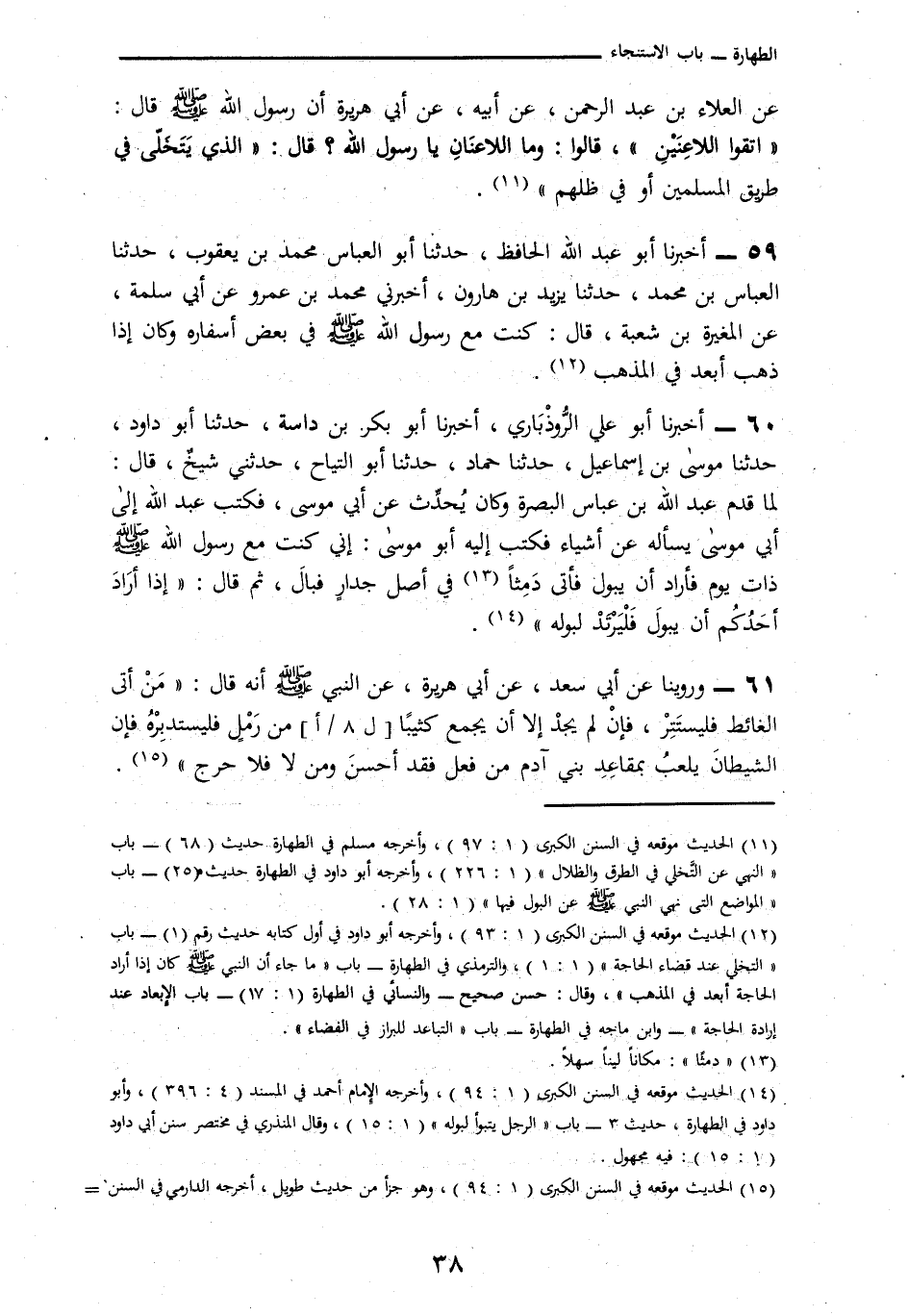 59 - أَخْبَرَنَا أَبُو عَبْدِ اللَّهِ الْحَافِظُ، أنا أَبُو الْعَبَّاسِ مُحَمَّدُ بْنُ يَعْقُوبَ، نا الْعَبَّاسُ بْنُ مُحَمَّدٍ، نا يَزِيدُ بْنُ هَارُونَ، أَخْبَرَنِي مُحَمَّدُ بْنُ عَمْرٍو، عَنْ أَبِي سَلَمَةَ، عَنِ الْمُغِيرَةِ بْنِ شُعْبَةَ، قَالَ: § «كُنْتُ مَعَ رَسُولِ اللَّهِ صَلَّى اللهُ عَلَيْهِ وَسَلَّمَ فِي بَعْضِ أَسْفَارِهِ وَكَانَ إِذَا ذَهَبَ أَبْعَدَ فِي الْمَذْهَبِ»