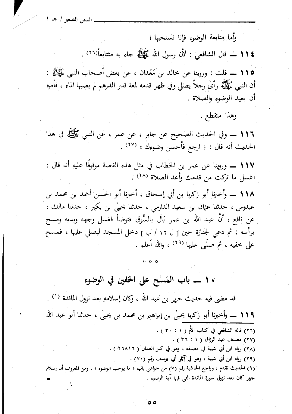 116 - وَفِي الْحَدِيثِ الصَّحِيحِ عَنْ جَابِرٍ، عَنْ عُمَرَ، عَنِ النَّبِيِّ صَلَّى اللهُ عَلَيْهِ وَسَلَّمَ فِي هَذَا الْحَدِيثِ أَنَّهُ قَالَ: § «ارْجِعْ فَأَحْسِنْ وُضُوءَكَ»