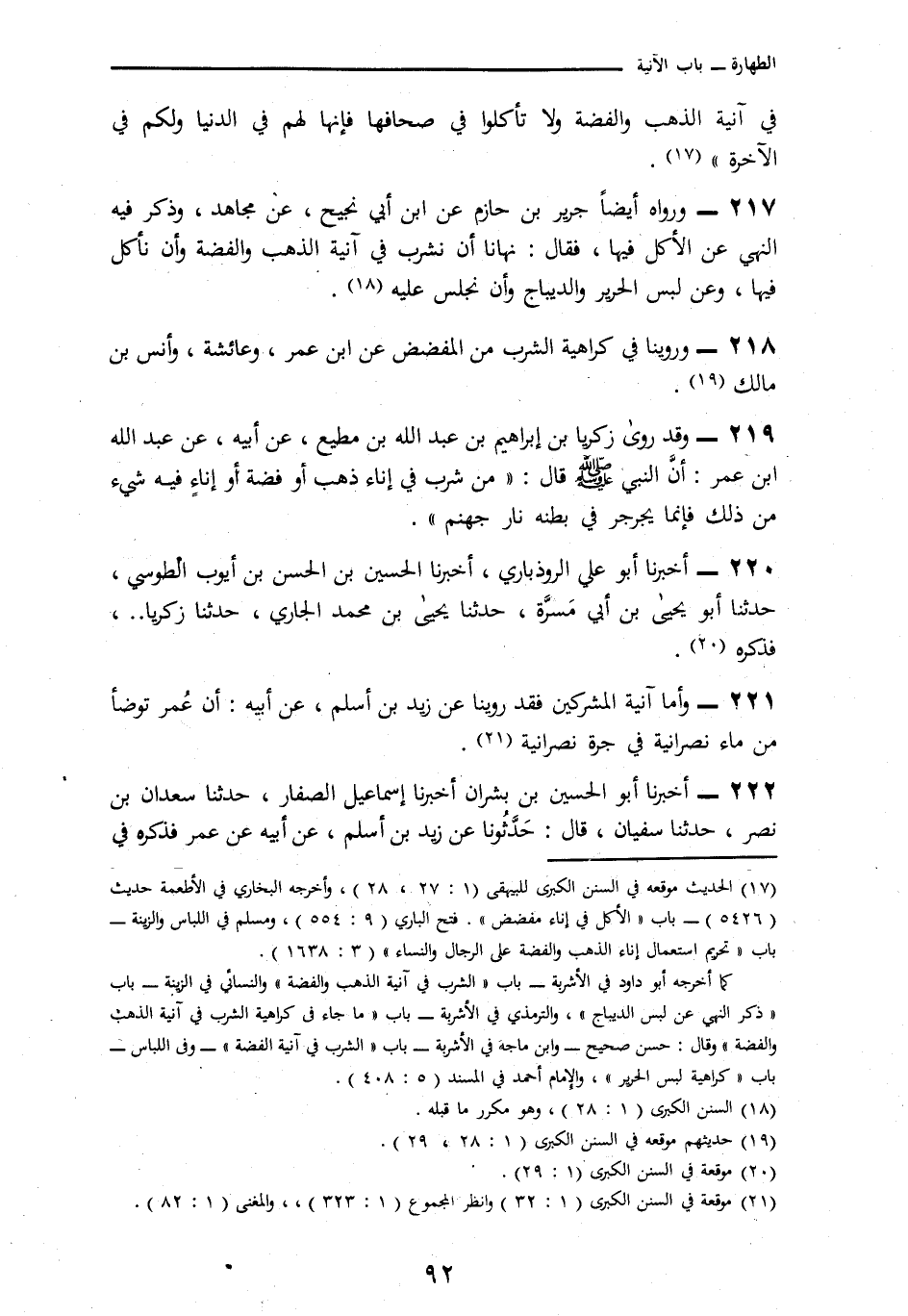 221 - أَمَّا آنِيَةُ الْمُشْرِكِينَ فَقَدْ رُوِّينَا عَنْ زَيْدِ بْنِ أَسْلَمَ، عَنْ أَبِيهِ، أَنَّ عُمَرَ § «تَوَضَّأَ مِنْ مَاءِ نَصْرَانِيَّةٍ فِي جَرَّةٍ نَصْرَانِيَّةٍ»