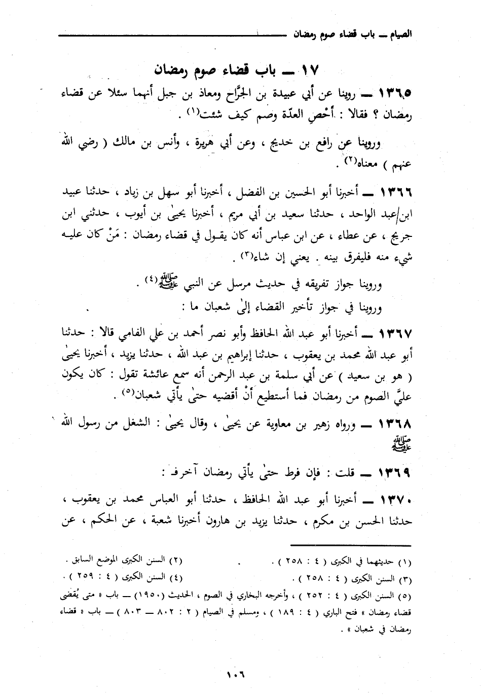 1367 - أَخْبَرَنَا أَبُو عَبْدِ اللَّهِ الْحَافِظُ، وَأَبُو نَصْرٍ أَحْمَدُ بْنُ عَلِيٍّ الْفَامِيُّ قَالَا: نَا أَبُو عَبْدِ اللَّهِ مُحَمَّدُ بْنُ يَعْقُوبَ، نَا إِبْرَاهِيمُ بْنُ عَبْدِ اللَّهِ، نَا يَزِيدُ، أَنَا يَحْيَى هُوَ ابْنُ سَعِيدٍ، عَنْ أَبِي سَلَمَةَ بْنِ عَبْدِ الرَّحْمَنِ، أَنَّهُ سَمِعَ عَائِشَةَ تَقُولُ: «§كَانَ يَكُونُ عَلَيَّ الصَّوْمُ مِنْ رَمَضَانَ، فَمَا أَسْتَطِيعُ أَنْ أَقْضِيَهُ حَتَّى يَأْتِيَ شَعْبَانُ»