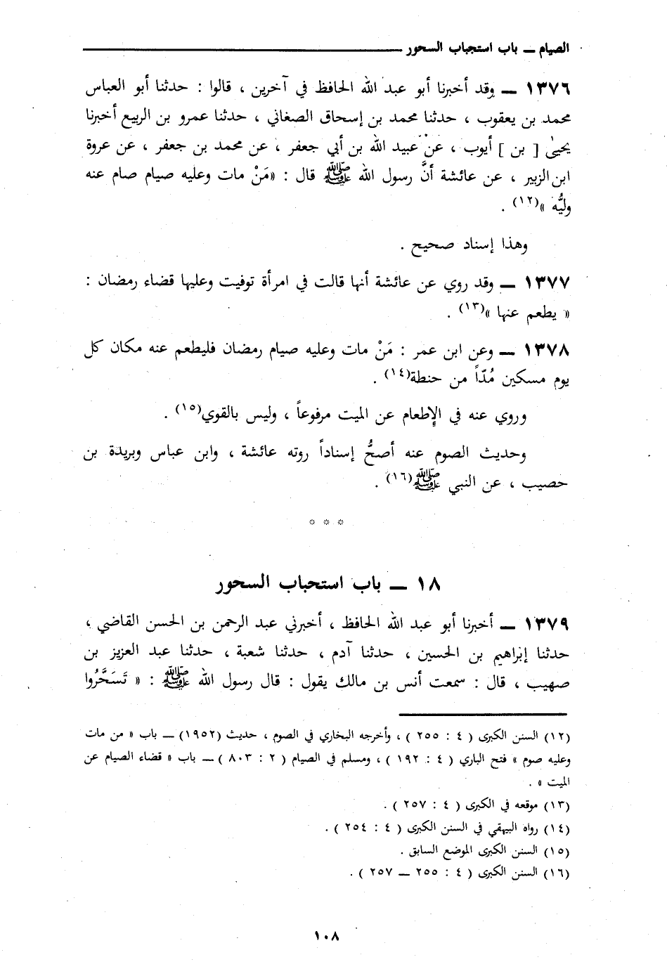 1376 - وَقَدْ أَخْبَرَنَا أَبُو عَبْدِ اللَّهِ الْحَافِظُ، فِي آخَرِينَ قَالُوا: نَا أَبُو الْعَبَّاسِ مُحَمَّدُ بْنُ يَعْقُوبَ، نَا مُحَمَّدُ بْنُ إِسْحَاقَ الصَّغَانِيُّ، نَا عَمْرُو بْنُ الرَّبِيعِ بْنِ طَارِقٍ، أَنَا يَحْيَى بْنُ أَيُّوبَ، عَنْ عُبَيْدِ اللَّهِ بْنِ أَبِي جَعْفَرٍ، عَنْ مُحَمَّدِ بْنِ جَعْفَرٍ، عَنْ عُرْوَةَ بْنِ الزُّبَيْرِ، عَنْ عَائِشَةَ، أَنَّ رَسُولَ اللَّهِ صَلَّى اللهُ عَلَيْهِ وَسَلَّمَ قَالَ: § «مَنْ مَاتَ وَعَلَيْهِ صِيَامٌ صَامَ عَنْهُ وَلِيُّهُ» وَهَذَا إِسْنَادٌ صَحِيحٌ