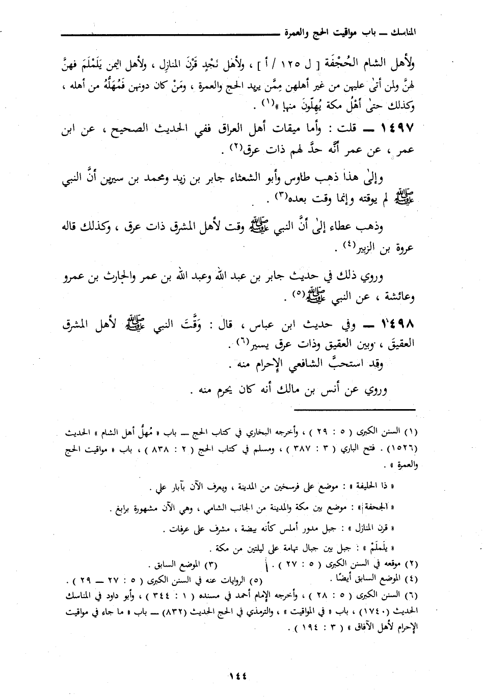 1498 - وَرُوِيَ عَنْ أَنَسِ بْنِ مَالِكٍ: «أَنَّهُ §كَانَ يُحْرِمُ مِنْهُ» -[145]- وَفِي أَسَانِيدِ هَذِهِ الْأَحَادِيثِ الْمَرْفُوعَةِ مَقَالٌ