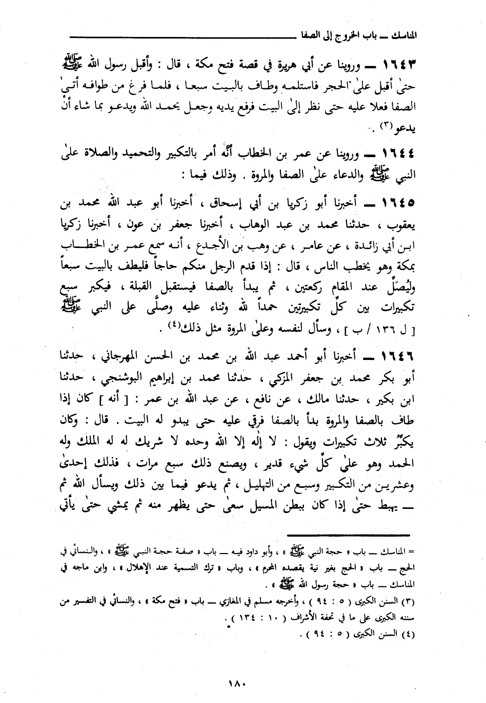 1644 - وَرُوِّينَا عَنْ عُمَرَ بْنِ الْخَطَّابِ، أَنَّهُ أَمَرَ بِالتَّكْبِيرِ وَالتَّحْمِيدِ وَالصَّلَاةِ عَلَى النَّبِيِّ صَلَّى اللهُ عَلَيْهِ وَسَلَّمَ وَالدُّعَاءِ عَلَى الصَّفَا وَالْمَرْوَةِ وَذَلِكَ فِيمَا