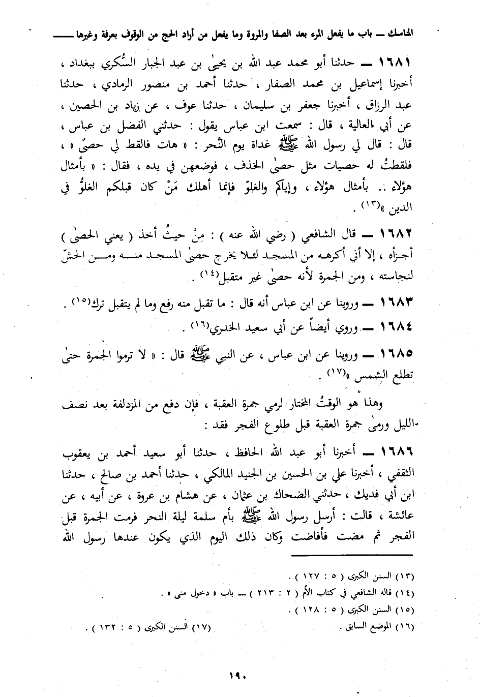 1685 - وَرُوِّينَا، عَنِ ابْنِ عَبَّاسٍ، عَنِ النَّبِيِّ صَلَّى اللهُ عَلَيْهِ وَسَلَّمَ قَالَ: § «لَا تَرْمُوا الْجَمْرَةَ حَتَّى تَطْلُعَ الشَّمْسُ» وَهَذَا هُوَ الْوَقْتُ الْمُخْتَارُ لِرَمْي جَمْرَةِ الْعَقَبَةِ، فَإِنْ دَفَعَ مِنَ الْمُزْدَلِفَةِ بَعْدَ نِصْفِ اللَّيْلِ وَرَمَى جَمْرَةَ الْعَقَبَةِ قَبْلَ طُلُوعِ الْفَجْرِ فَقَدْ