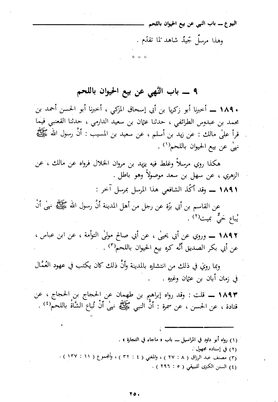 1892 - وَرُوِيَ عَنْ أَبِي يَحْيَى، عَنْ أَبِي صَالِحٍ، مَوْلَى التَّوْأَمَةِ، عَنِ ابْنِ عَبَّاسٍ، عَنْ أَبِي بَكْرٍ الصِّدِّيقِ، أَنَّهُ: § «كَرِهَ بَيْعَ الْحَيَوَانِ بِاللَّحْمِ» وَبِمَا رُوِيَ فِي ذَلِكَ مِنَ انْتِشَارِهِ بِالْمَدِينَةِ وَأَنَّ ذَلِكَ كَانَ يُكْتَبُ فِي عُهُودِ الْعُمَّالِ فِي زَمَانِ أَبَانَ بْنِ عُثْمَانَ وَغَيْرِهِ
