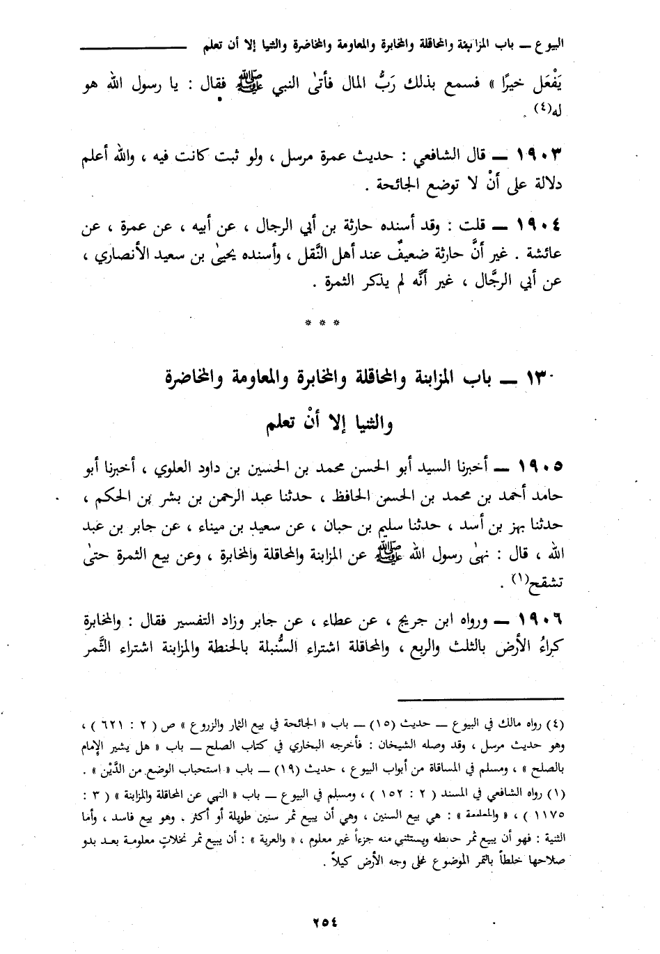 1905 - أَخْبَرَنَا السَّيِّدُ أَبُو الْحَسَنِ مُحَمَّدُ بْنُ الْحُسَيْنِ بْنِ دَاوُدَ الْعَلَوِيُّ، نا أَبُو حَامِدِ أَحْمَدُ بْنُ مُحَمَّدِ بْنِ الْحَسَنِ الْحَافِظُ، ثنَا عَبْدُ الرَّحْمَنِ بْنُ بِشْرِ بْنِ الْحَكَمِ، ثنَا بَهْزُ بْنُ أَسَدٍ، ثنا سُلَيْمُ بْنُ حَيَّانَ، عَنْ سَعِيدِ بْنِ مِينَاءَ، عَنْ جَابِرِ بْنِ عَبْدِ اللَّهِ، قَالَ: § «نَهَى رَسُولُ اللَّهِ صَلَّى اللهُ عَلَيْهِ وَسَلَّمَ عَنِ الْمُزَابَنَةِ وَالْمُحَاقَلَةِ وَالْمُخَابَرَةِ، وَعَنْ بَيْعِ الثَّمَرَةِ حَتَّى تَشْقَحَ»