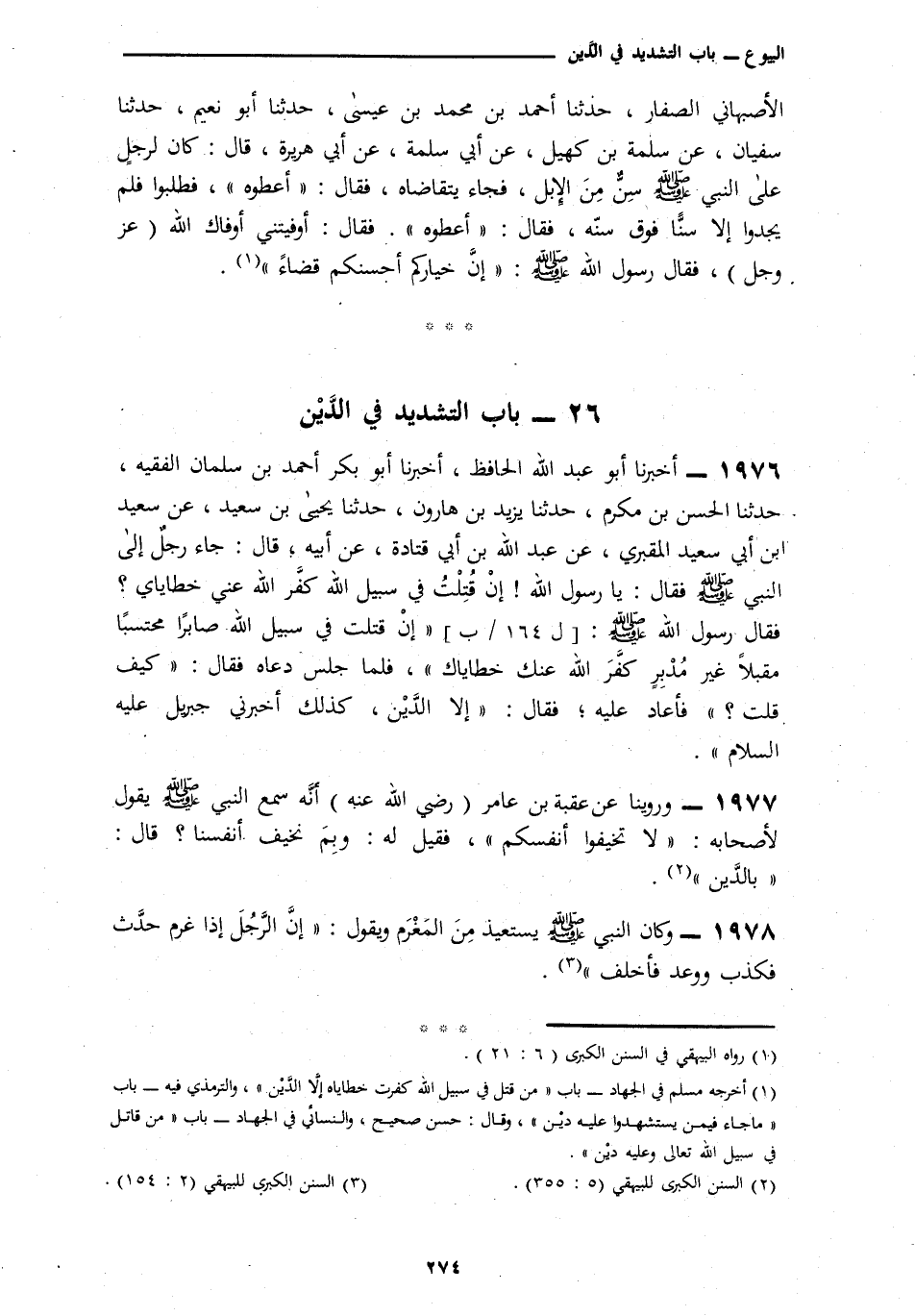 1977 - وَرُوِّينَا عَنْ عُقْبَةَ بْنِ عَامِرٍ، أَنَّهُ سَمِعَ النَّبِيَّ صَلَّى اللهُ عَلَيْهِ وَسَلَّمَ يَقُولُ لِأَصْحَابِهِ: «لَا تُخِيفُوا أَنْفُسَكُمْ»، فَقِيلَ لَهُ: وَبِمَ نُخِيفُ أَنْفُسَنَا؟ قَالَ: «بِالدَّيْنِ»