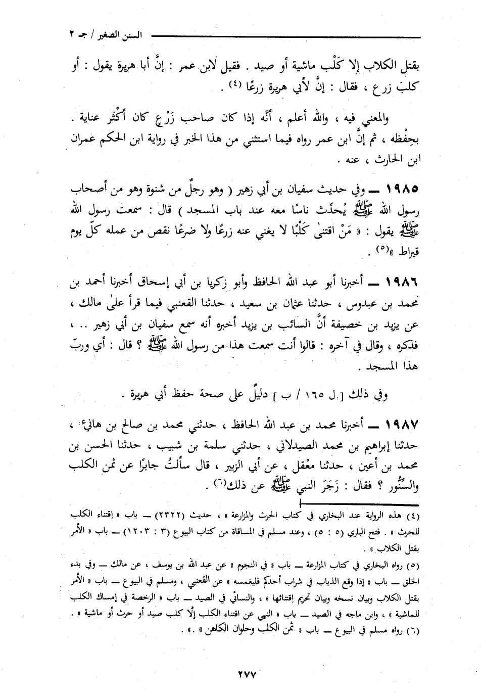 1987 - أَخْبَرَنَا مُحَمَّدُ بْنُ عَبْدِ اللَّهِ الْحَافِظُ، ثنا مُحَمَّدُ بْنُ صَالِحِ بْنِ هَانِئٍ، ثنَا إِبْرَاهِيمُ بْنُ مُحَمَّدٍ الصَّيْدَلَانِيُّ، ثنا سَلَمَةُ بْنُ شَبِيبٍ، ثنَا الْحَسَنُ بْنُ مُحَمَّدِ بْنِ أَعْيَنَ، ثنَا مَعْقِلٌ، عَنْ أَبِي الزُّبَيْرِ، قَالَ: سَأَلْتُ جَابِرًا عَنْ ثَمَنِ الْكَلْبِ وَالسِّنَّوْرِ،؟ فَقَالَ: § «زَجَرَ النَّبِيُّ صَلَّى اللهُ عَلَيْهِ وَسَلَّمَ عَنْ ذَلِكَ»