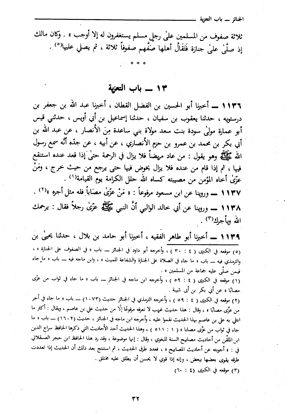1137 - وَرُوِّينَا عَنِ ابْنِ مَسْعُودٍ، مَرْفُوعًا: «مَنْ عَزَّى مُصَابًا فَلَهُ مِثْلُ أَجْرِهِ»